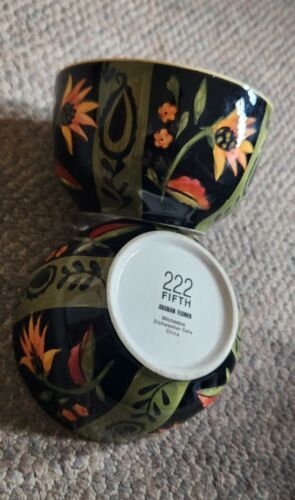 Lot of Soup 222 Fifth Arabian Flowers 5 3/4" Coupe Cereal Bowls Two