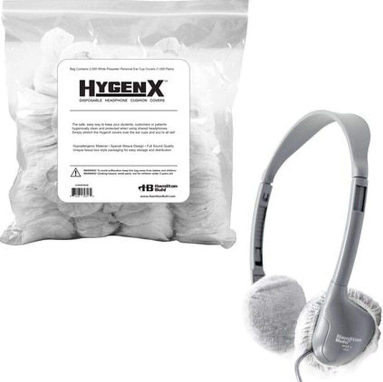 HamiltonBuhl X19HSPWHB HygenX 2.5" Sanitary Ear Cushion Covers, White for On-Ear Headphones and Headsets; Convenient, Resealable Bulk Bag with 1000 Pairs (Total of 2000 Individual Covers), 2 1/2" Outer Diameter, Stretches to Approximately 4", Hypoallergenic Polyester Weave