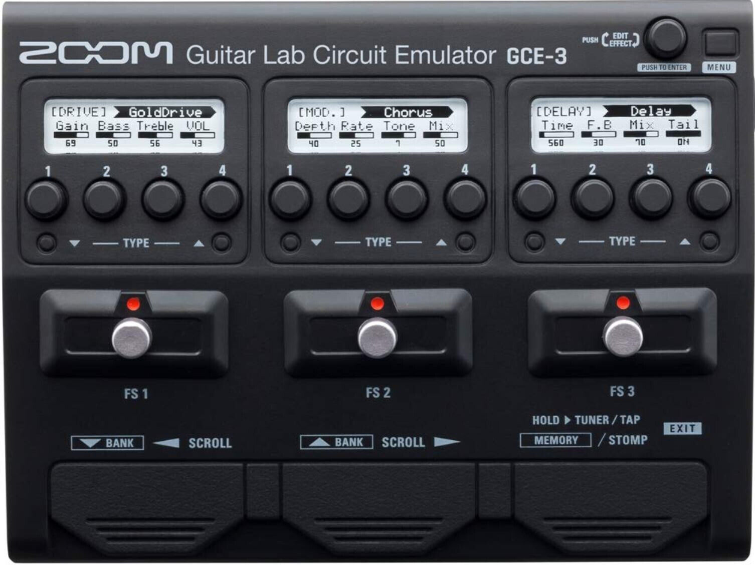 Zoom GCE-3 Guitar Lab Circuit Emulator; Instantly Access Dozens of High-quality Effects, Including Distortion, Overdrive, EQ, Compression, Delay, Reverb, Flanger, Phaser and Chorus; Built-In DSP Processing for Circuit Emulation of G5n, G3n, G3Xn, B3n, G1 FOUR, G1X FOUR, B1 FOUR, B1X FOUR; Free Download of ZOOM Guitar Lab Mac/Windows Software for Creating, Editing and Managing Patches; USB-C Port for Connection to Computer