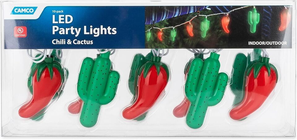 Camco - 42659 - Chili & Cactus 10 Party Lights Patio Decor - 8 ft.