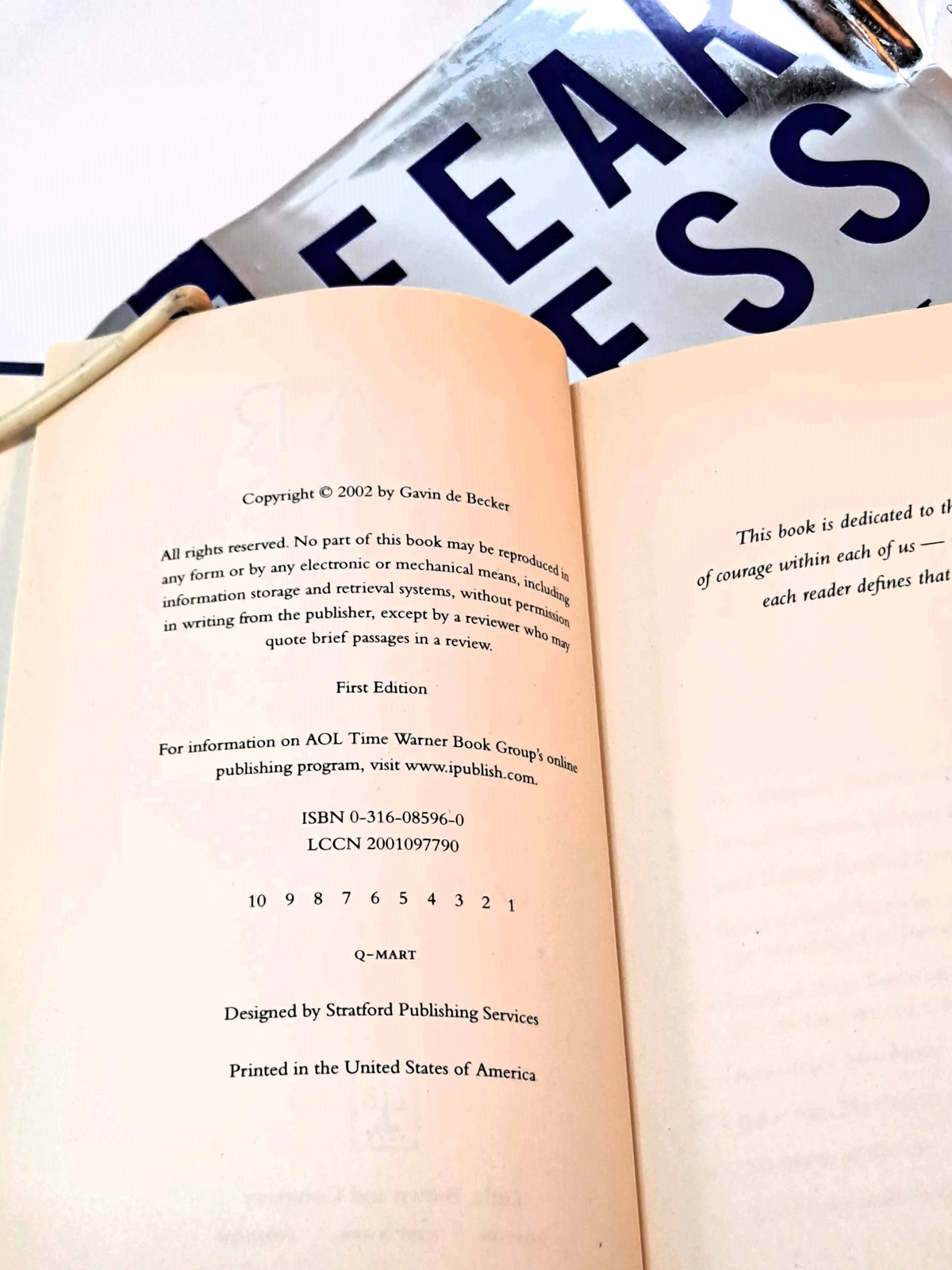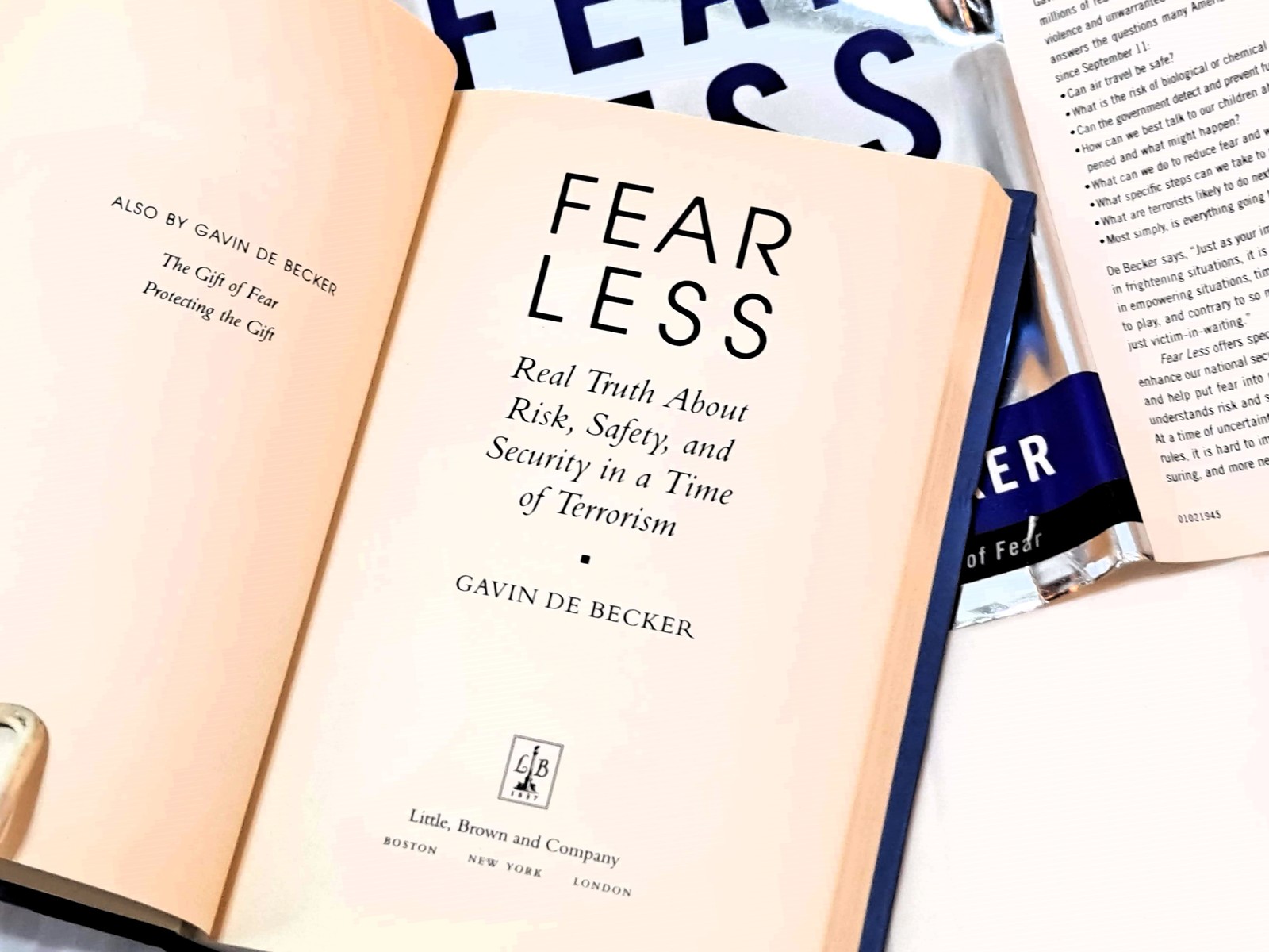 FEAR LESS: Real Truth About Risk, Safety, and Security in a Time of Terrorism by Gavin De Becker (2002 1st Edition Hardcover in Dust Jacket)
