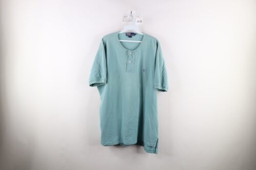 Vintage 90s Ralph Lauren Mens XL Distressed Pique Cotton Henley T-Shirt Teal