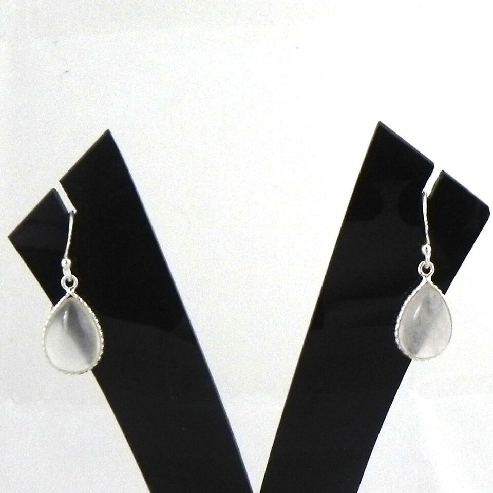 925 Sterling Silver White Chalcedony Handmade Dangle Earrings Gift Women ES-1121