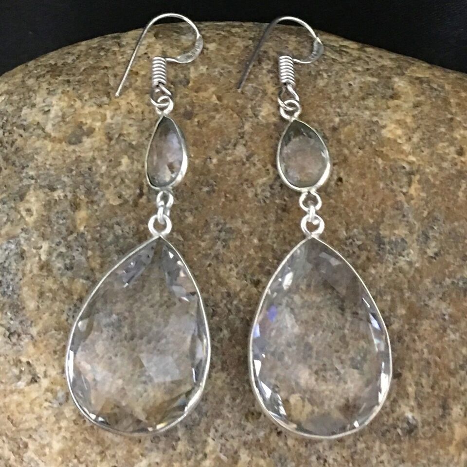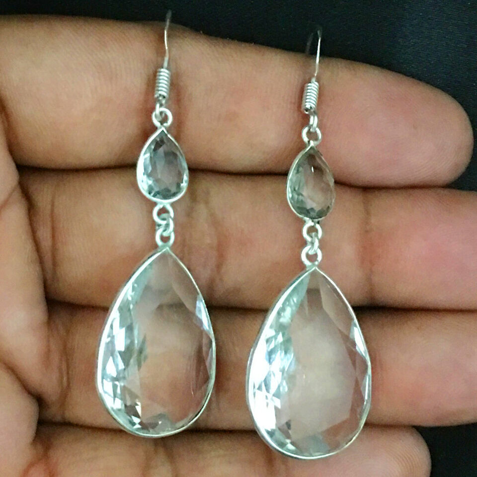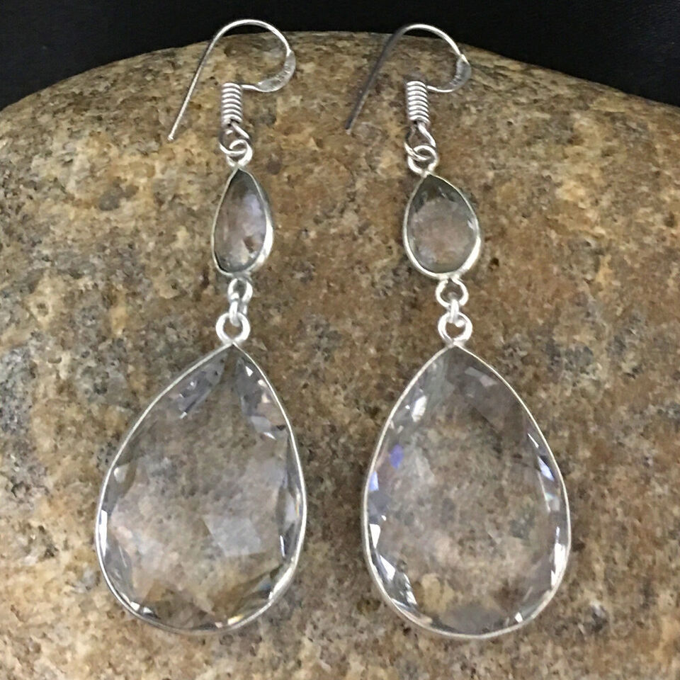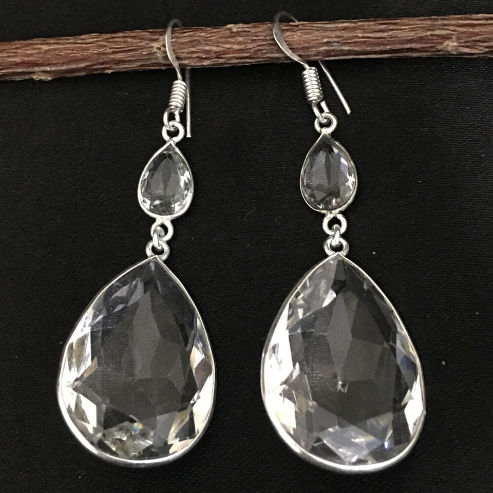 925 Sterling Silver Crystal Quartz Bezel Earrings Fest Gift Women BES-1004