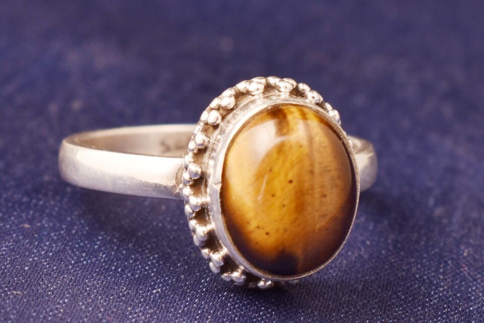 925 Sterling Silver Tiger Eye Gemstone Rose Gold/Gold Plated Ring Gift GRS-1182
