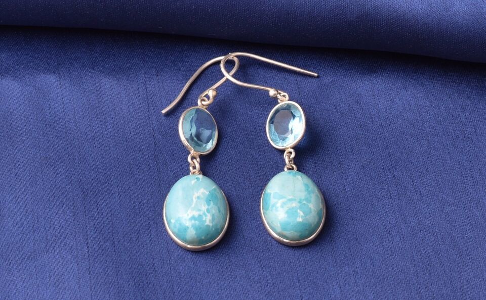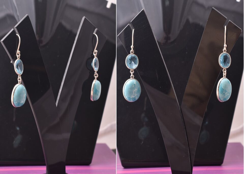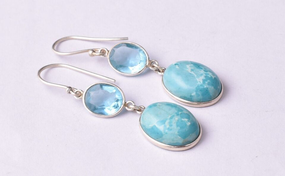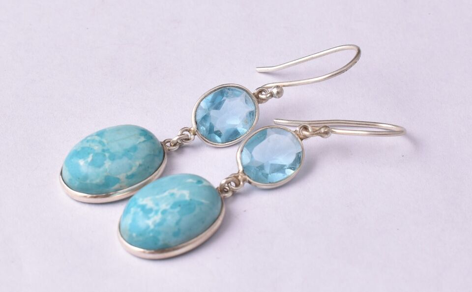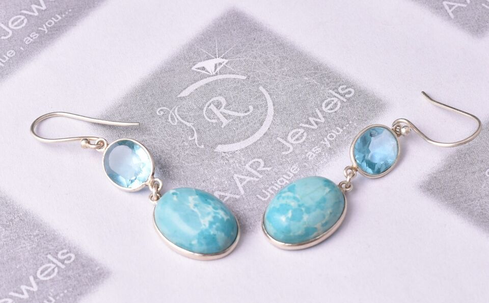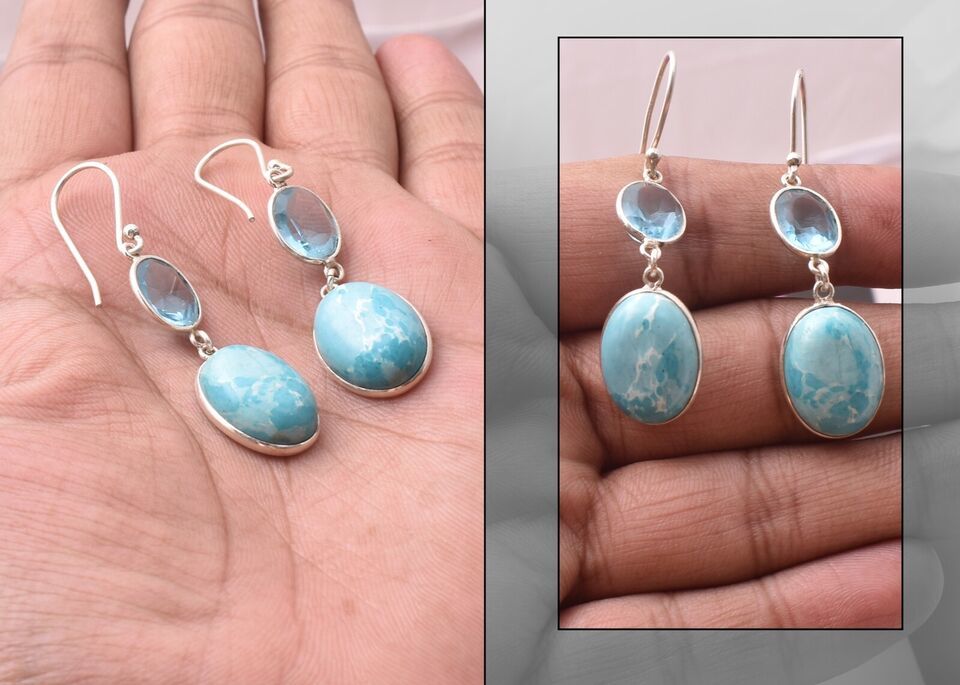 Sterling Silver Larimar & Topaz Gems Handmade WomderfulE arring Women Gift ES