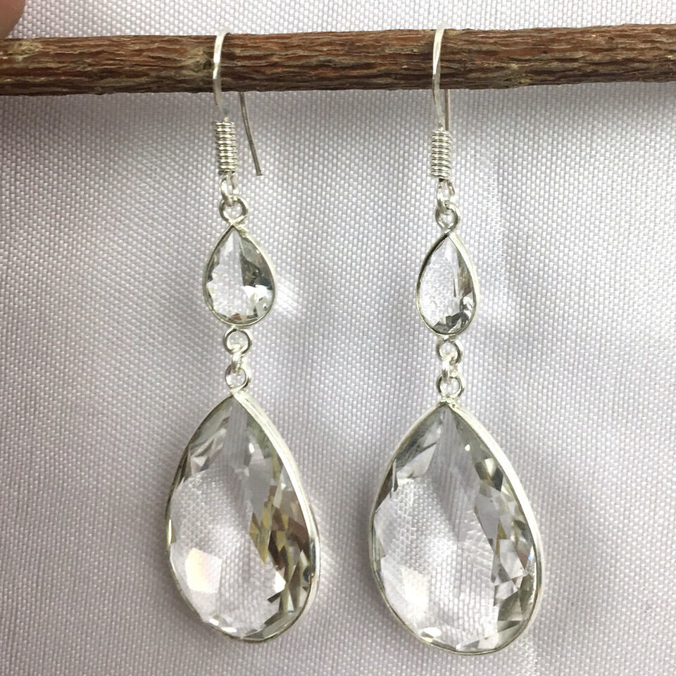 925 Sterling Silver Handmade Crystal Quartz Bezel Earrings Gift Women BES-1161