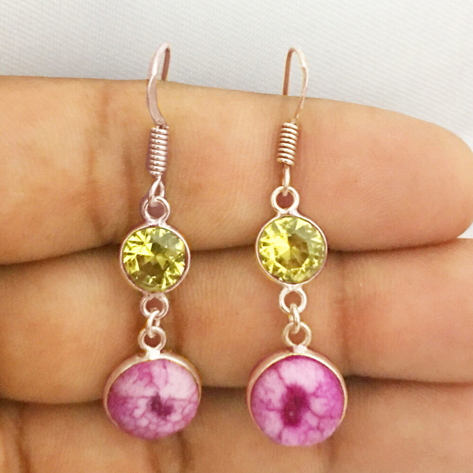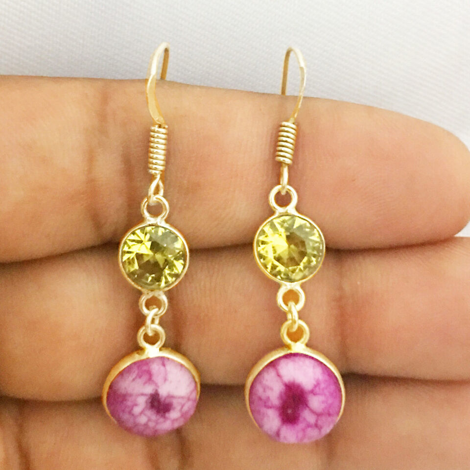 925 Sterling Silver Solar Quartz & Mystic Gold / Rose Gold Plated Earrings