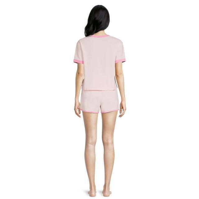 Coca-Cola Women's Ringer Tee and Lounge Set, 2-Piece Size XL (16-18) Pink