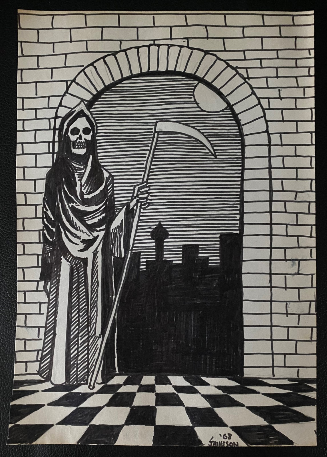 Bill Jameson Surrealism Drawing "Doorway Reaper" 1968