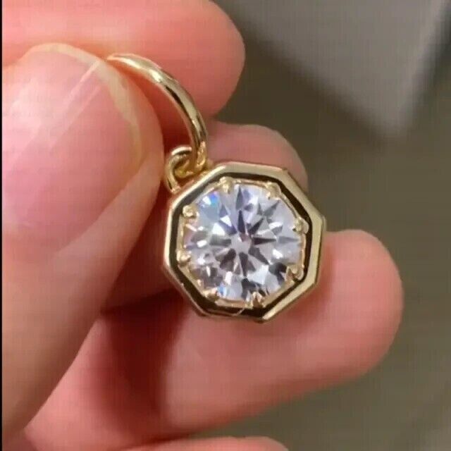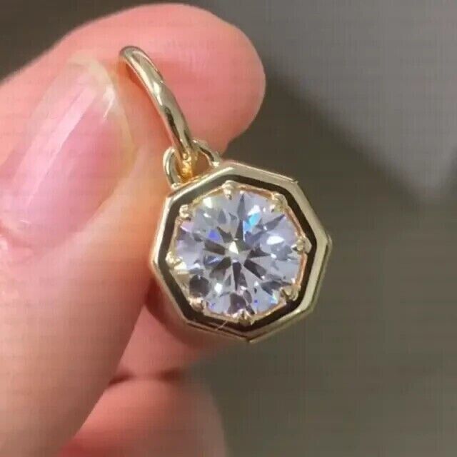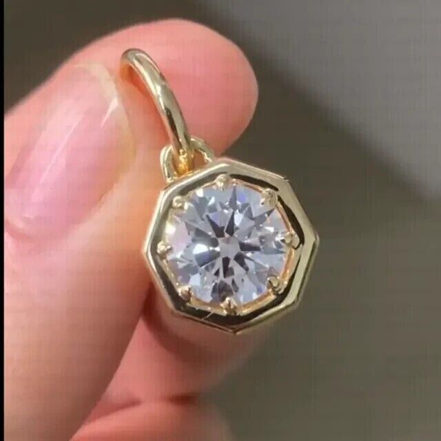 1.50Ct Round Cut Solitaire Women's Pendant Moissanite 14k Yellow Gold Plated