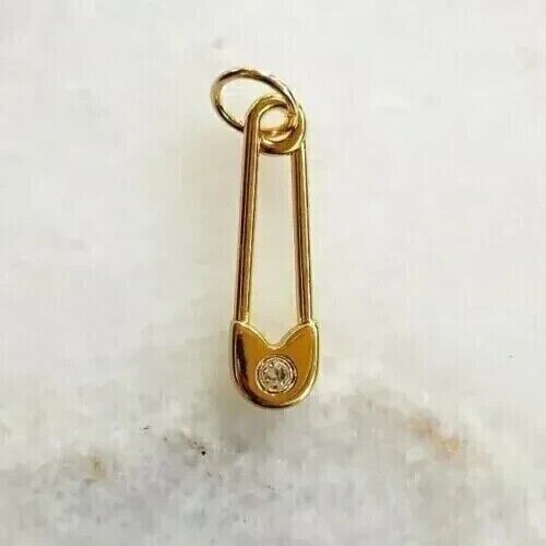 0.20Ct Round Cut Moissanite Safety Pin Pendant Charm 14K Yellow Gold Plated