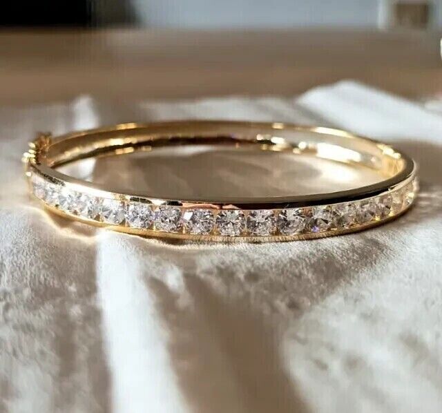 6Ct Round Cut Lab Created Diamond Women's Bangle Bracelet 14K Yellow Gold Plated