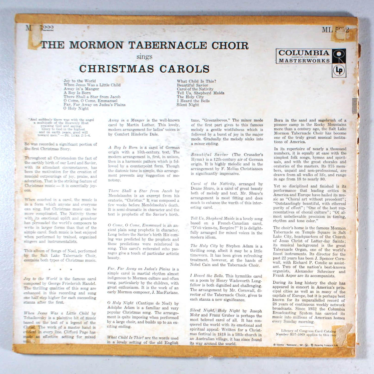 Mormon Tabernacle Choir - Christmas Carols (1957) Vinyl LP •PLAY-GRADED•  added to cart.