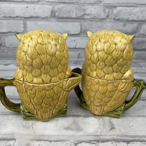 Royal Sealy Japan Owl Creamer Sugar Salt And Pepper Set Yellow Read Description