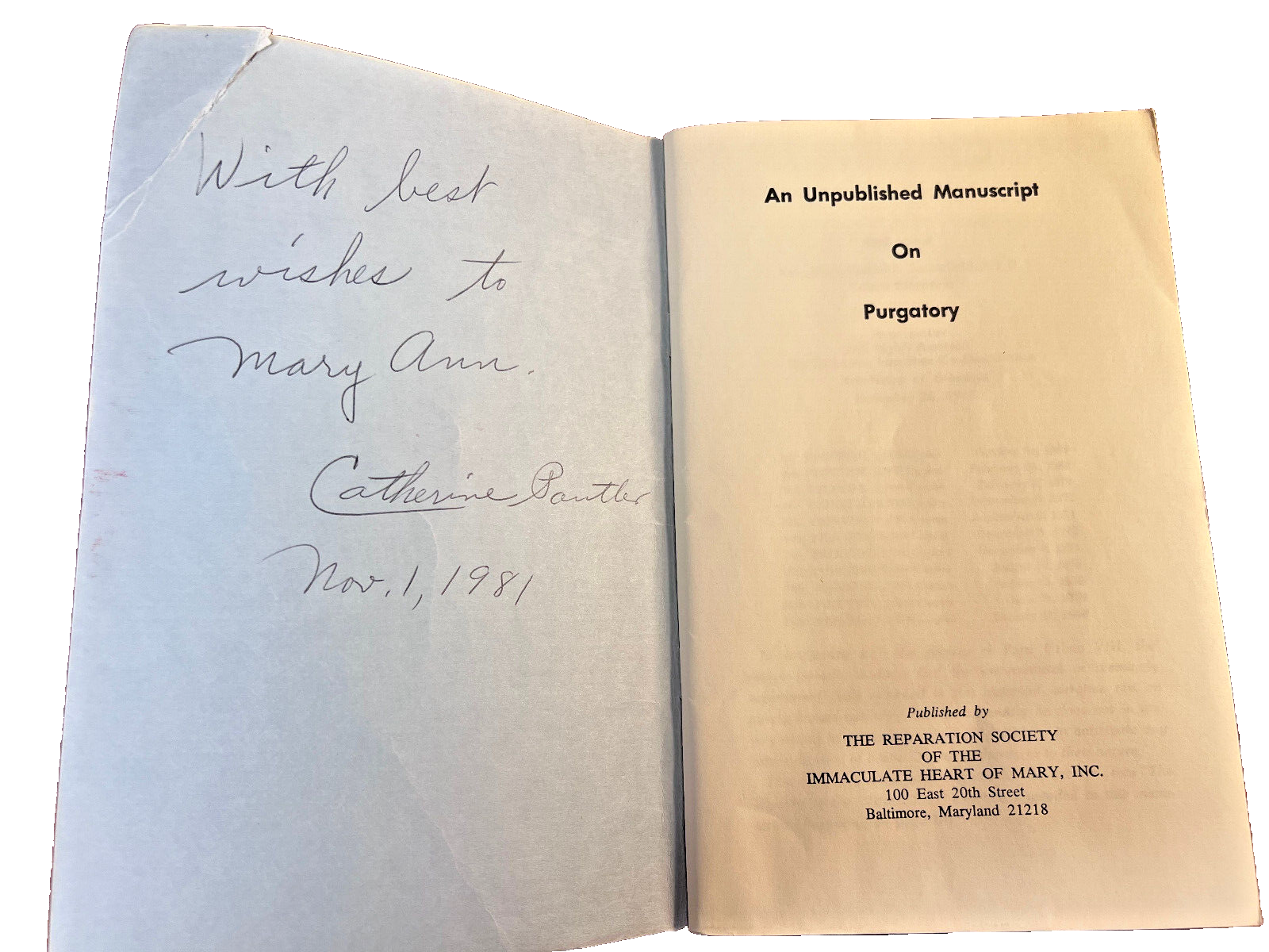 This is a rare and remarkable manuscript titled "An Unpublished Manuscript On Purgatory" written by Rev Msgr. Carroll E. Satterfield, S.T.D. and published by The Reparation Society of the Immaculate Heart of Mary, Inc. in 1980. It is a staple-bound book in English language, perfect for those who are interested in exploring the concept of purgatory.