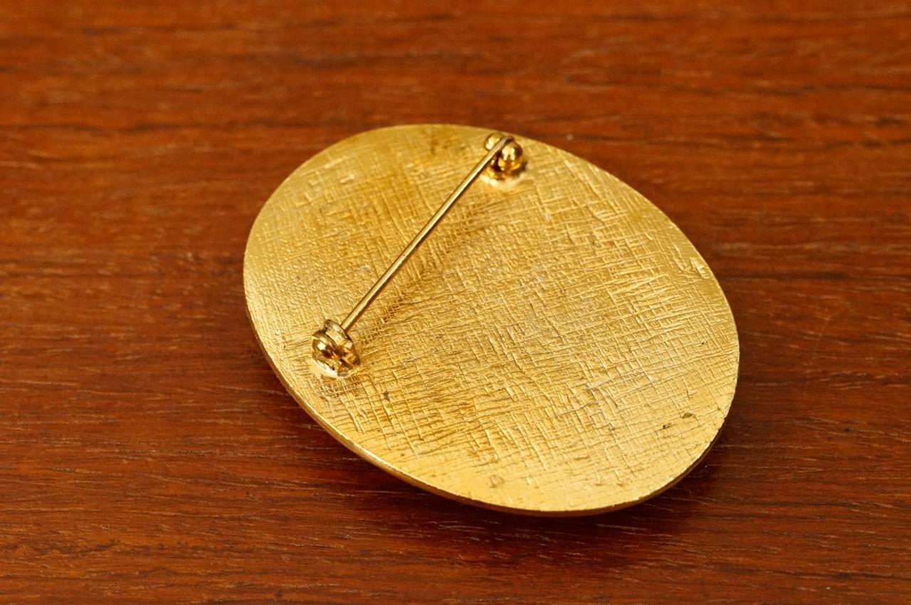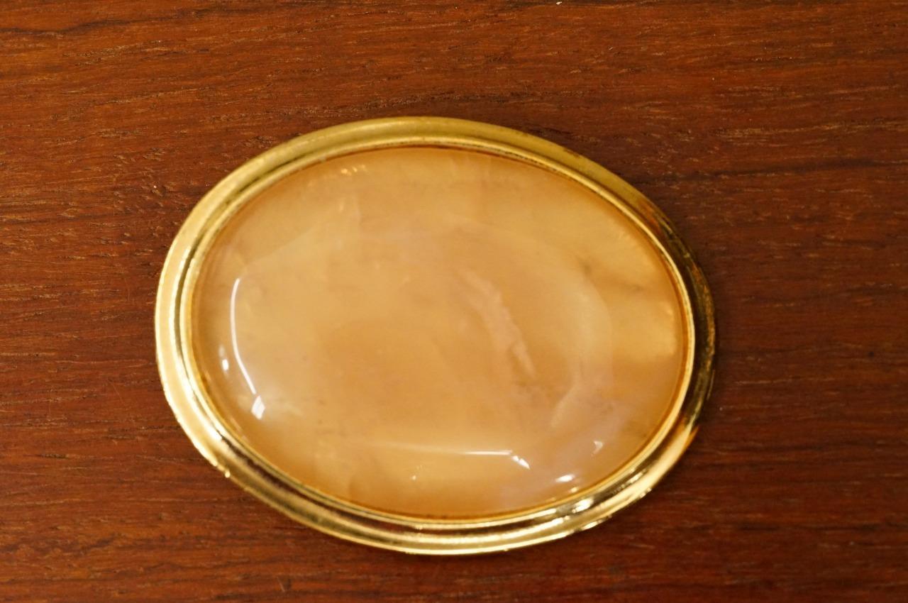 Vintage Costume Jewelry Rose Quartz Gold Tone Metal Oval Brooch Pin