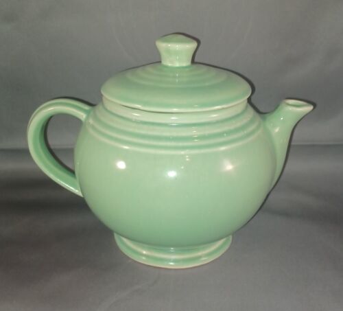 The teapot is a type of decorative cookware and dinnerware, specifically designed for tea and coffee. It is a licensed reproduction, originally made by Fiesta. The teapot has a beautiful green color that will add a pop of color to any kitchen or dining room.