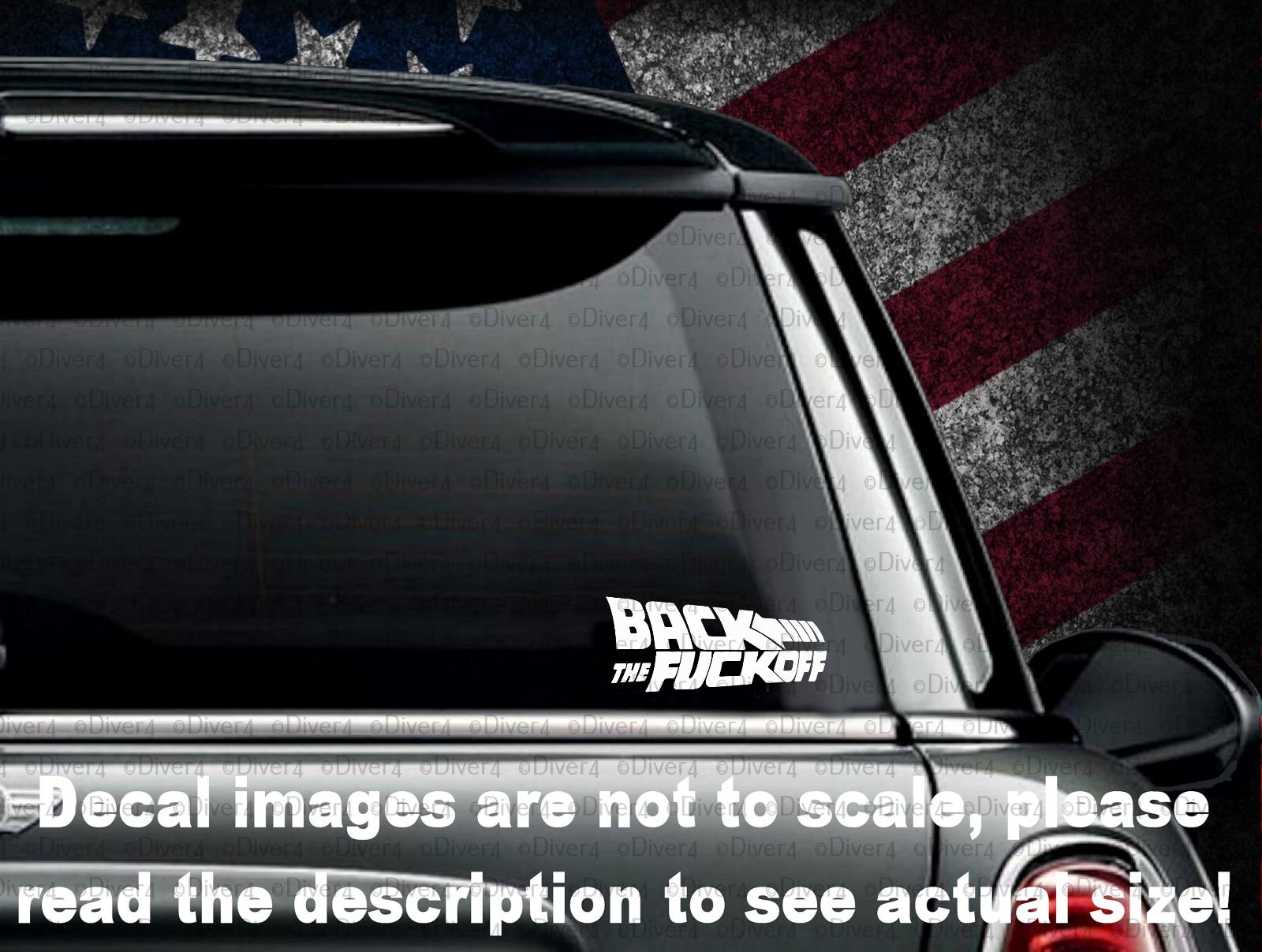 This is a custom Back The F$!K Off Funny vinyl car/truck window decal sticker.
