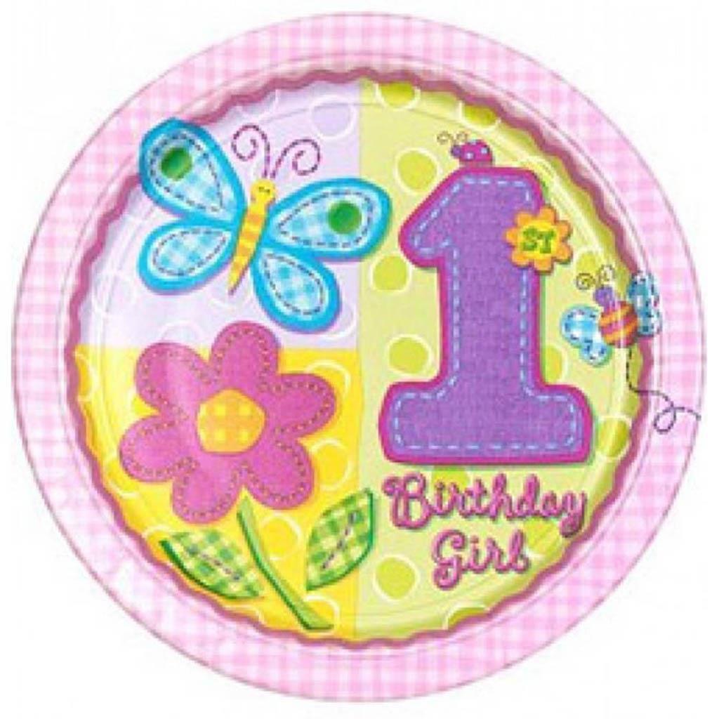 The Hugs and Stitches 1st birthday Lunch Plates with their pink gingham border, butterfly and flower detail are perfect for her special party.