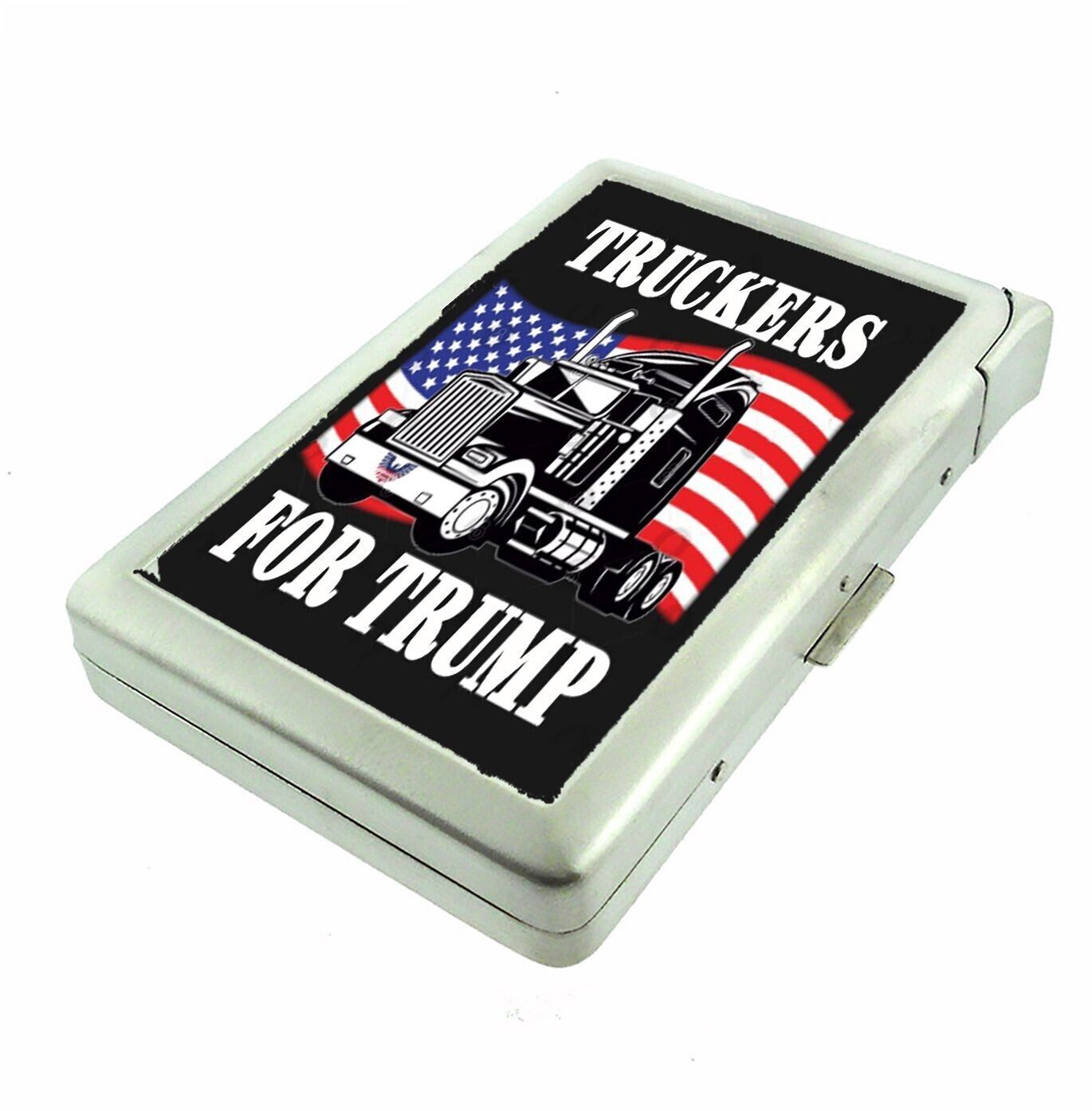 Truckers For Trump 2024 L1 Cigarette Case with Built in Lighter Metal Wallet
