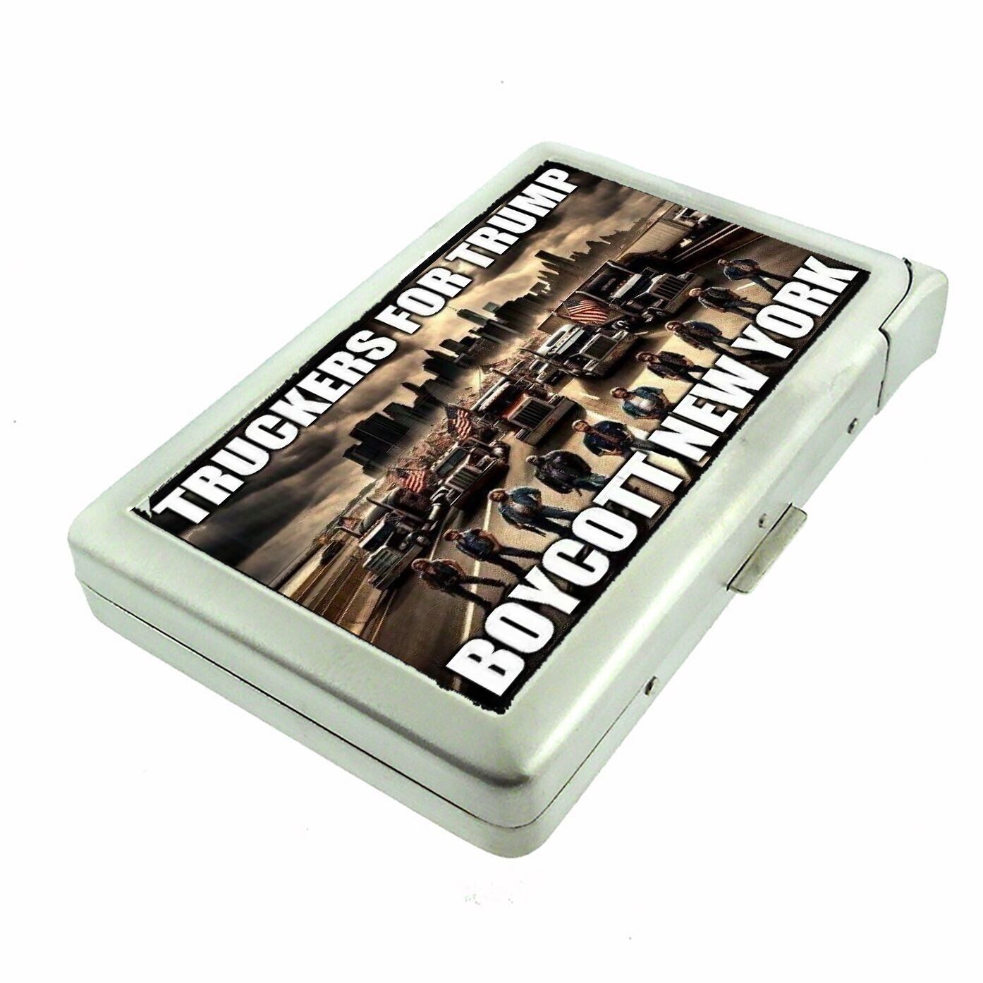 Truckers For Trump 2024 L2 Cigarette Case with Built in Lighter Metal Wallet