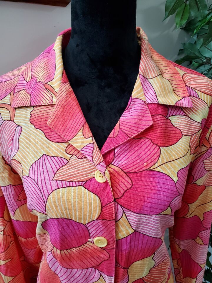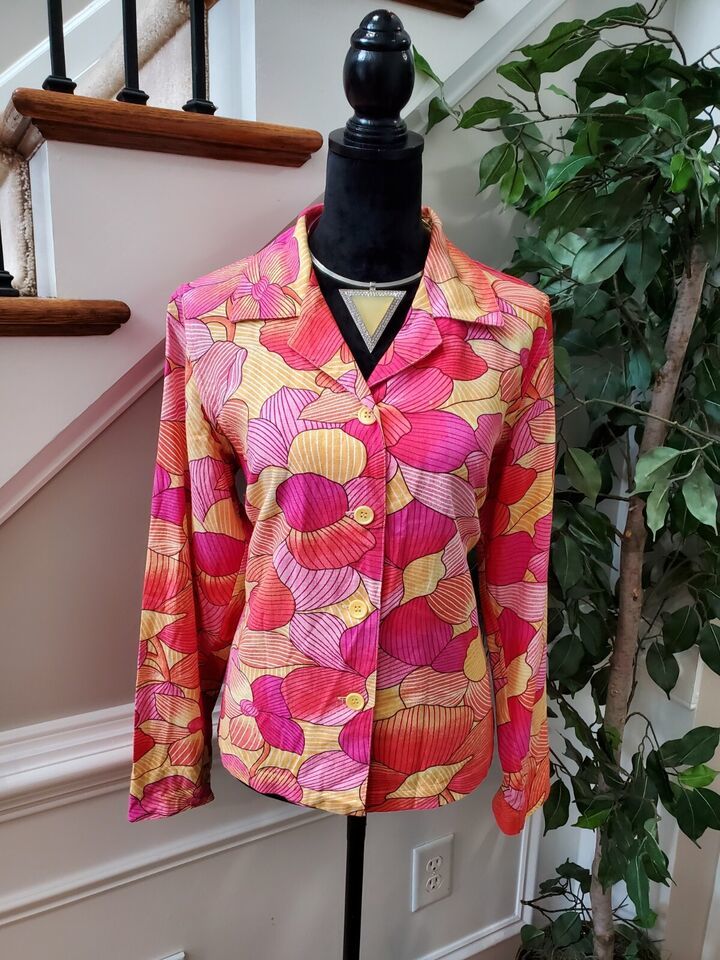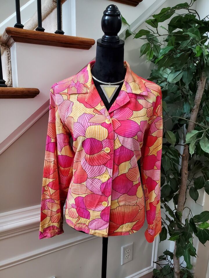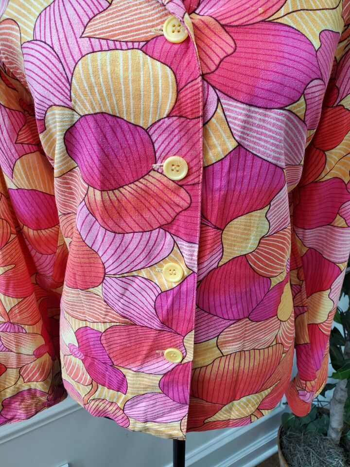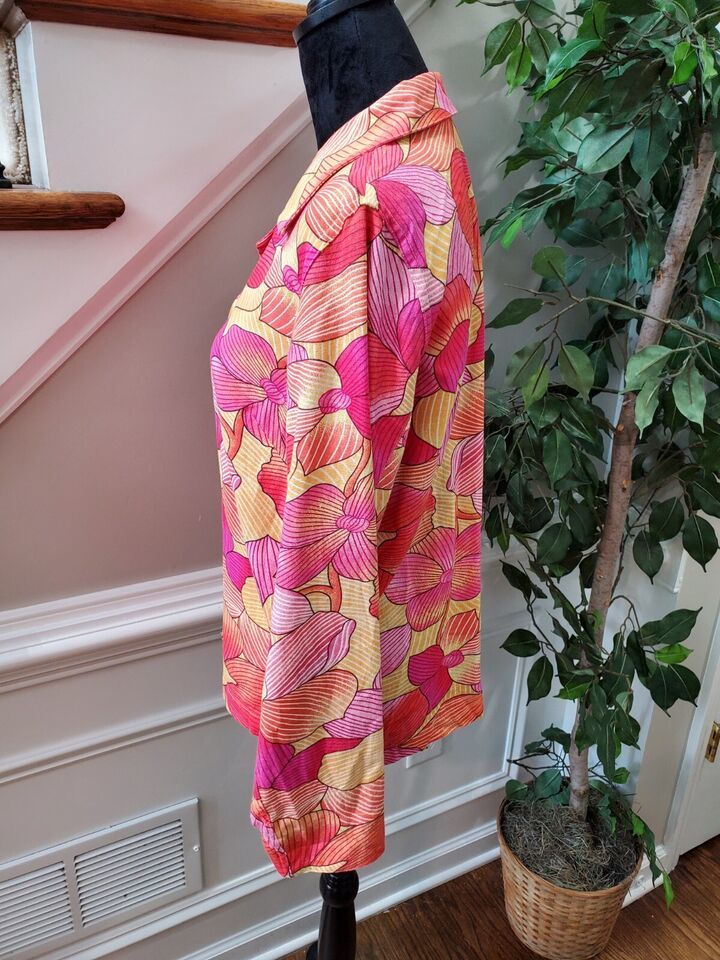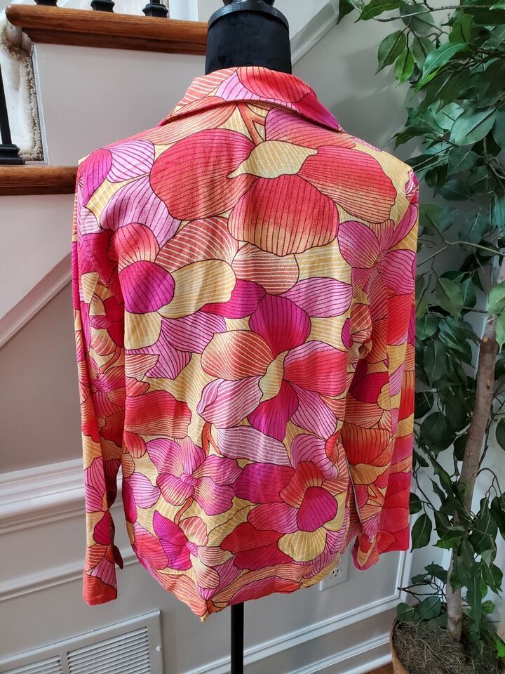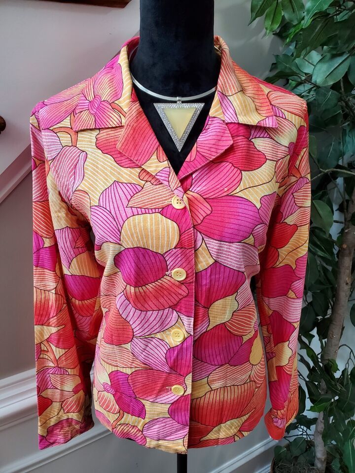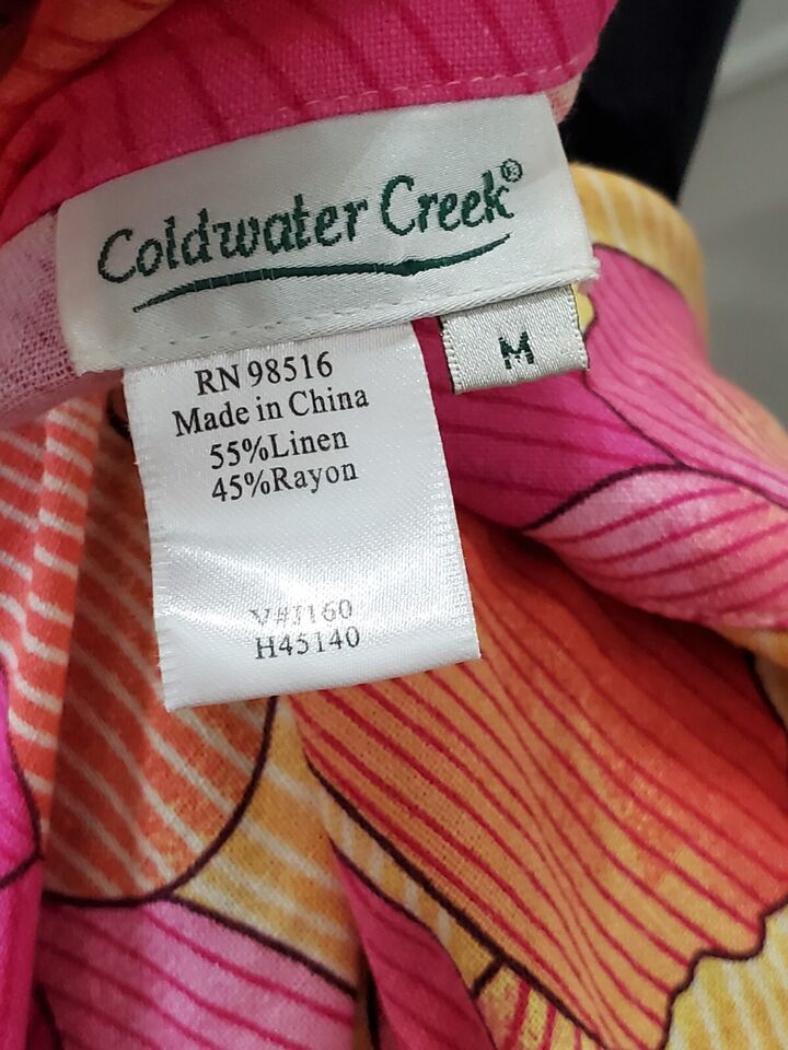 Coldwater Creek Women's Floral Linen Long Sleeve Buttons Front Casual Jacket M.