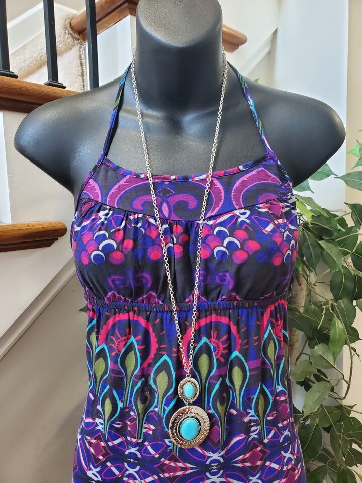 Xhilaration Women's Multicolor Rayon Halter Neck Sleeveless Long Maxi Dress XS