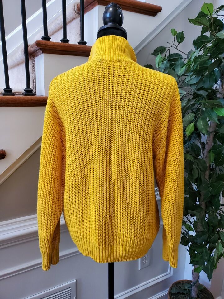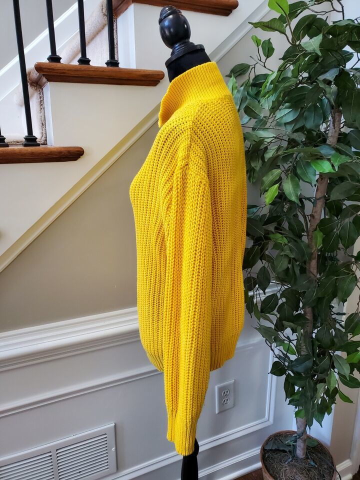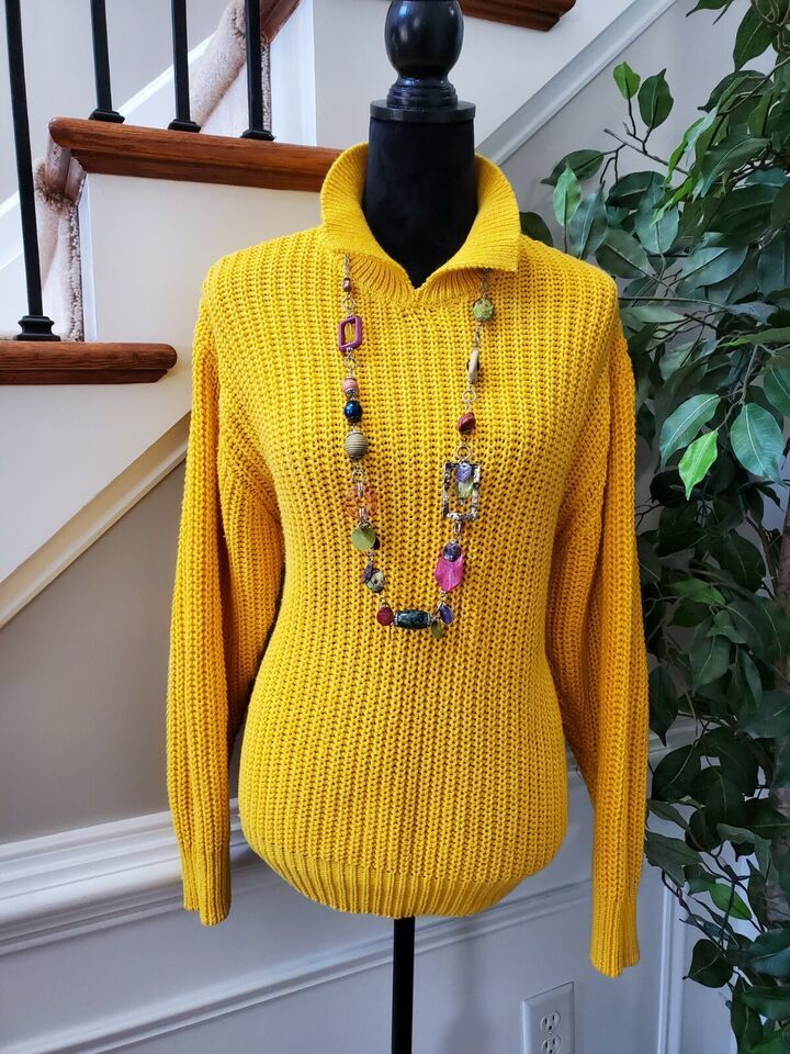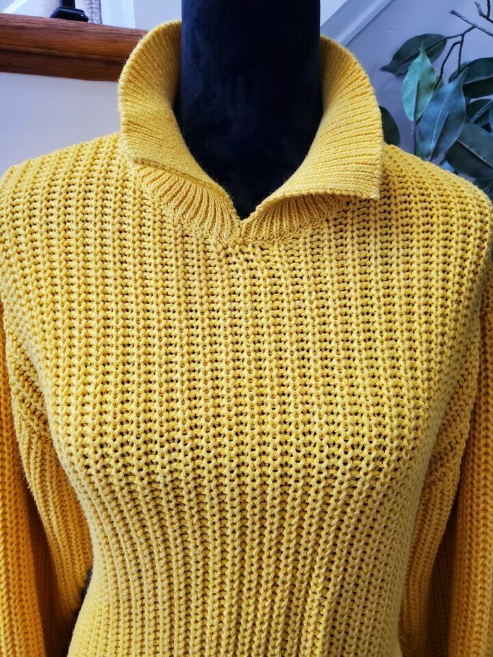 Laura Peterson Women Yellow Acrylic Ramie Long Sleeve Collared Knit Sweater Size Large