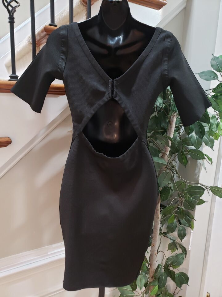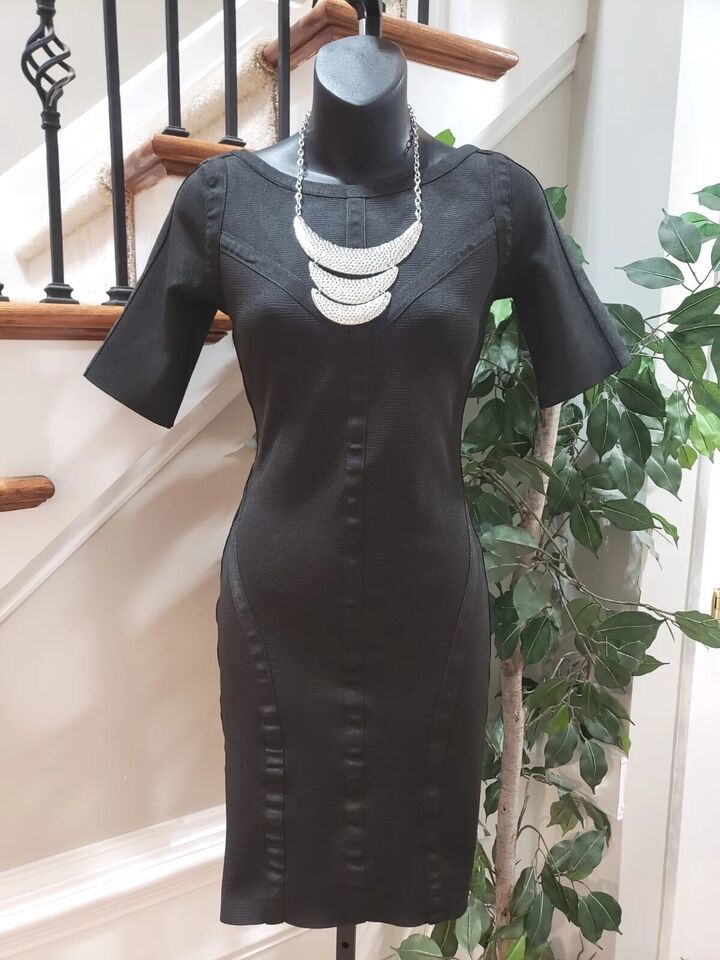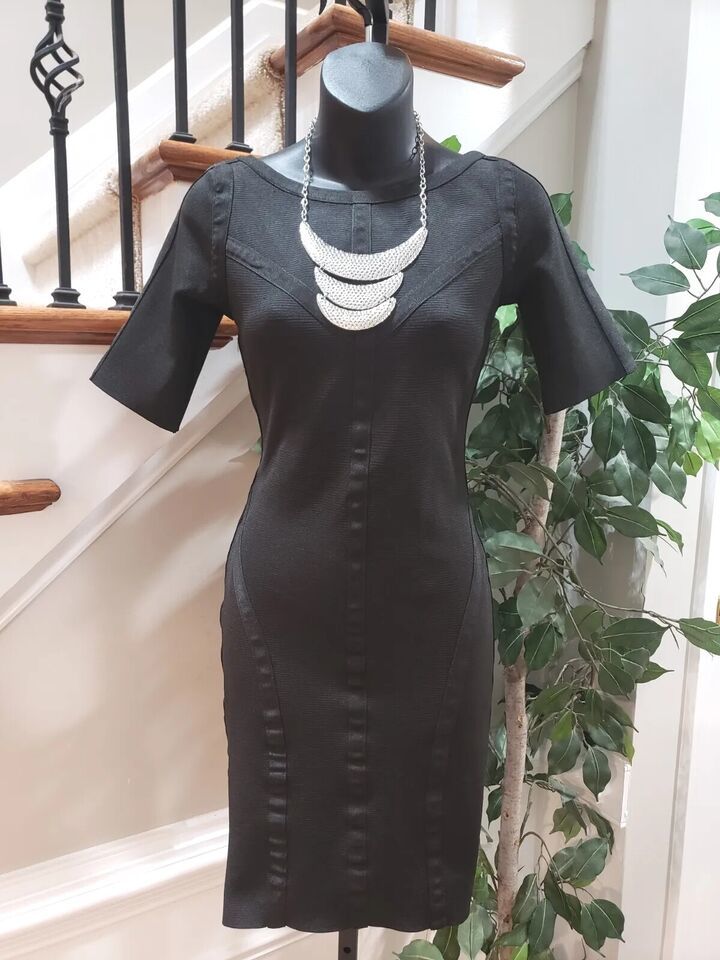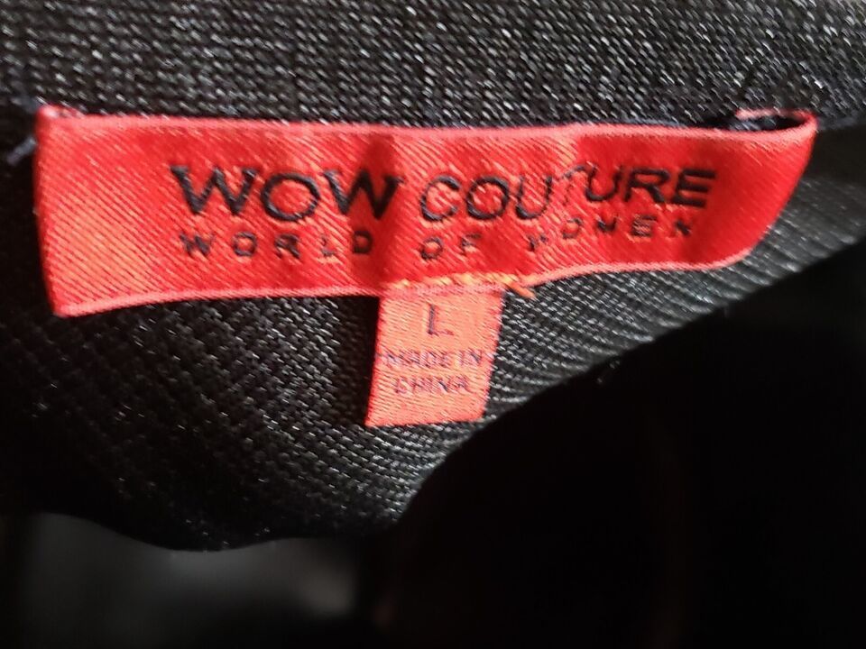 WOW Couture Womens Black Polyester Round Neck Short Sleeve Knee Length Dress Large.