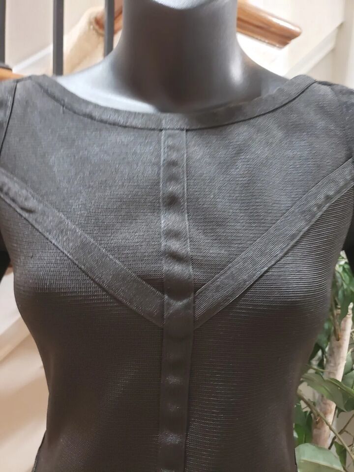 WOW Couture Womens Black Polyester Round Neck Short Sleeve Knee Length Dress L