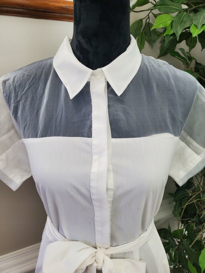Worthington Women's White Cotton Collared Short Sleeve Knee Length Dress Size 10