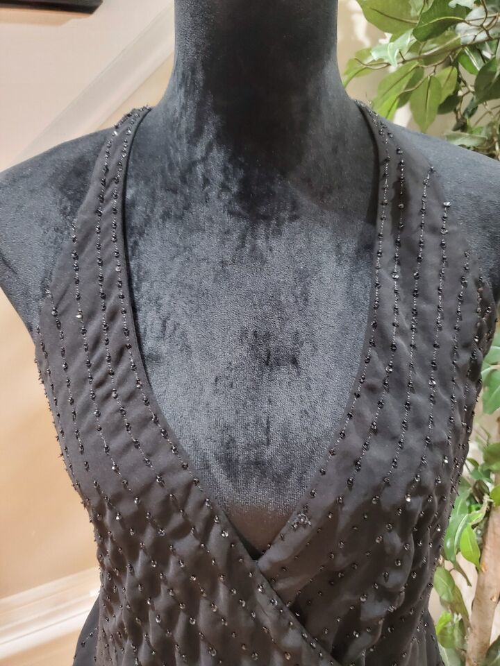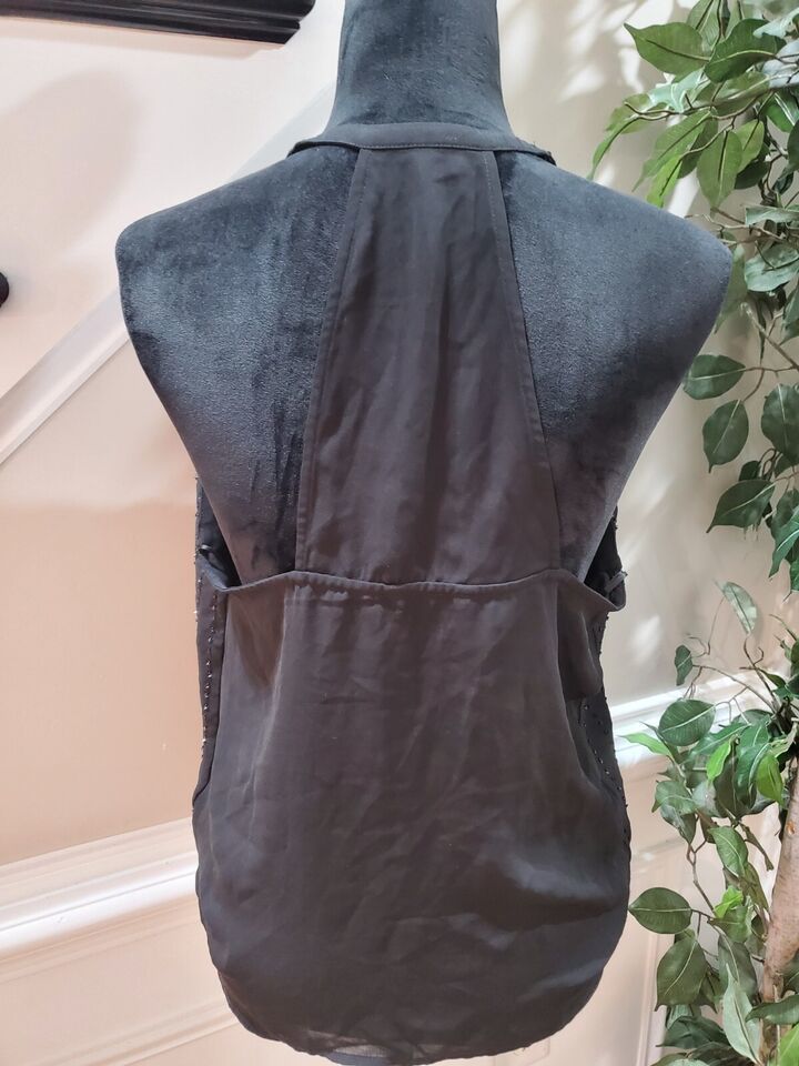 Guess Women's Black Beaded Polyester V-Neck Sleeveless Casual Top Blouse Size L
