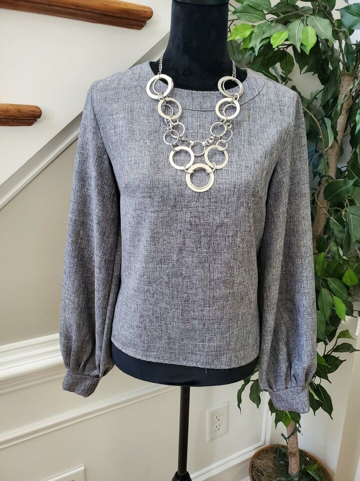 Shein Women's Solid Gray 100% Polyester Round Neck Long Sleeve Blouse Size Small