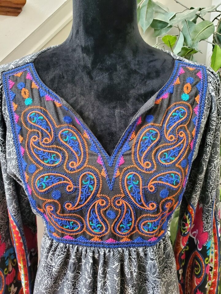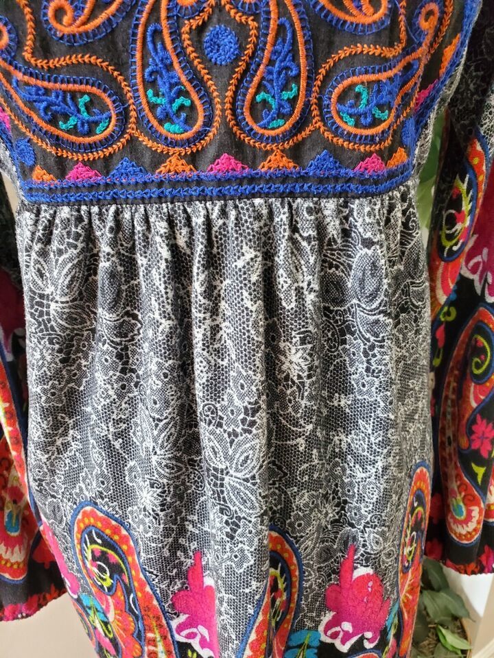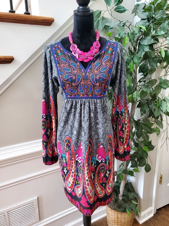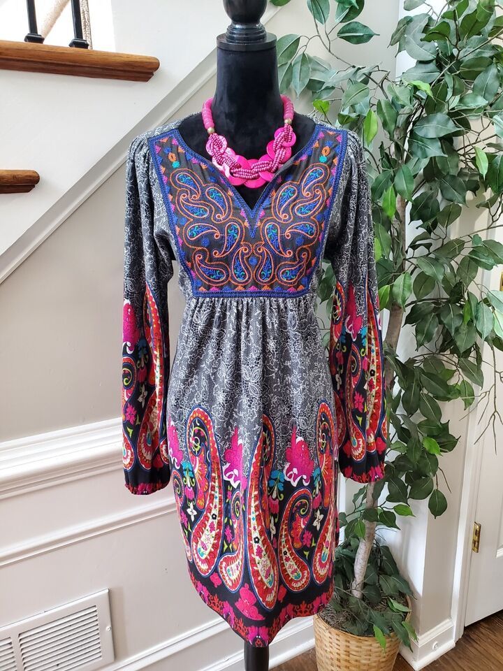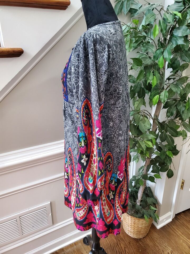 White Mark Women Multicolor Polyester V-Neck Long Sleeve Knee Length Dress Small.
