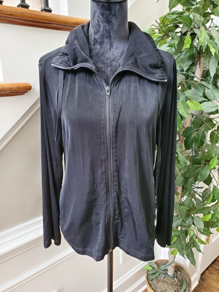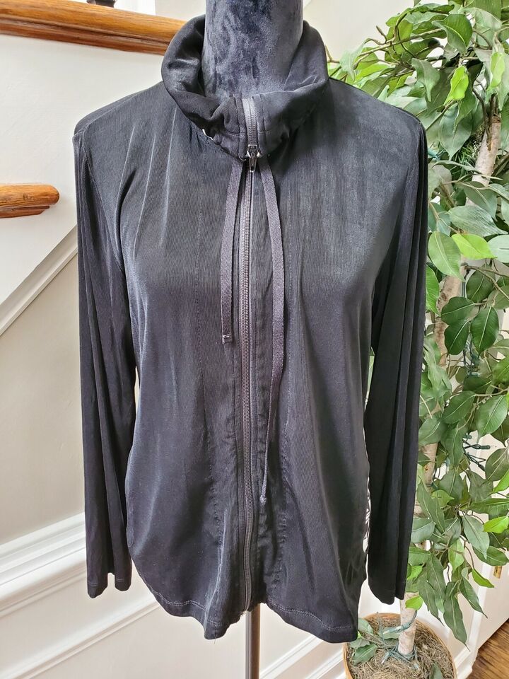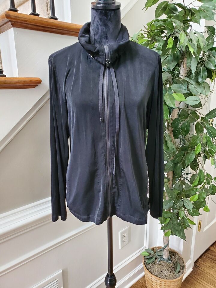 Chico's Women's Solid Black Acetate Long Sleeve Full Zip Front Casual Jacket 1
