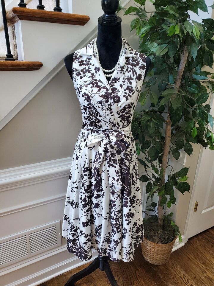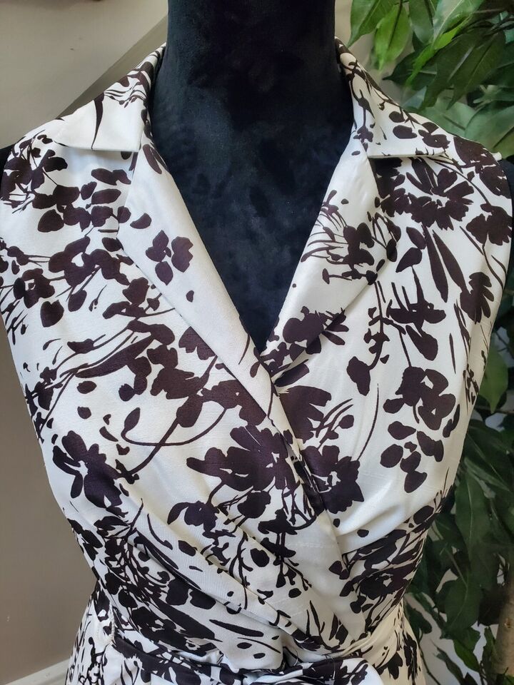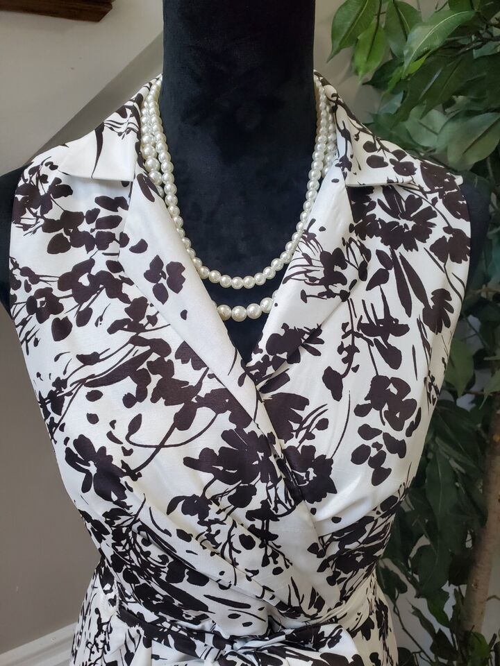 Dressbarn Women's White Polyester Collared Sleeveless Knee Length Dress Size 4