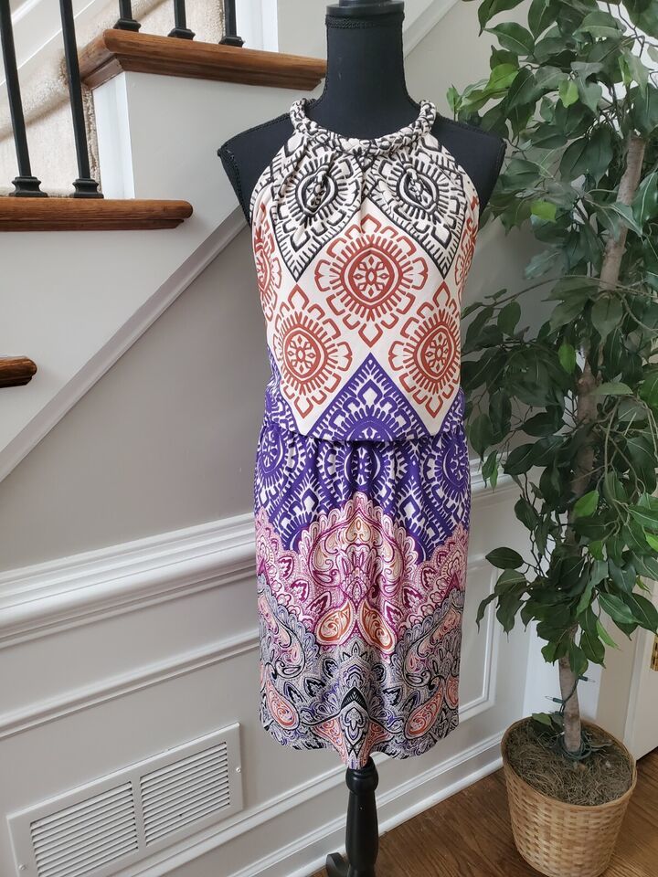 Dressbarn Womens Multicolor Polyester Floral Sleeveless Knee Length Dress Size 8.