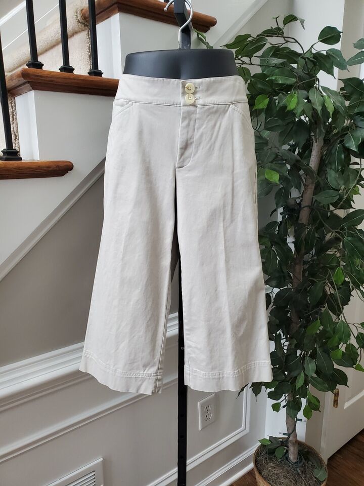 Docker's Women's Beige Cotton Wide Legs High Rise Regular Fit Casual Pants 12