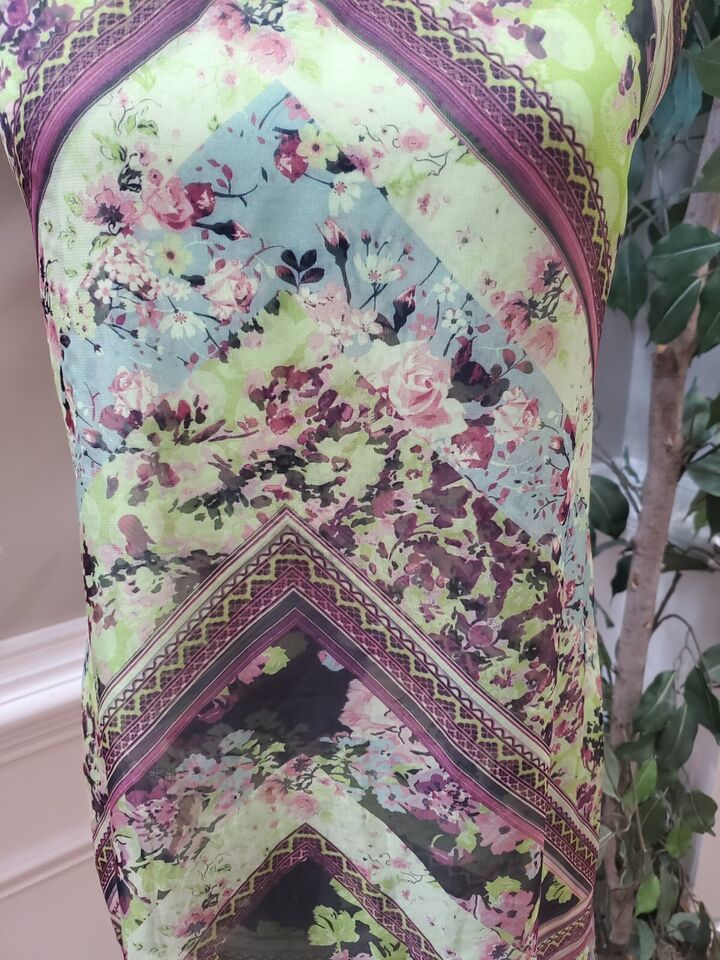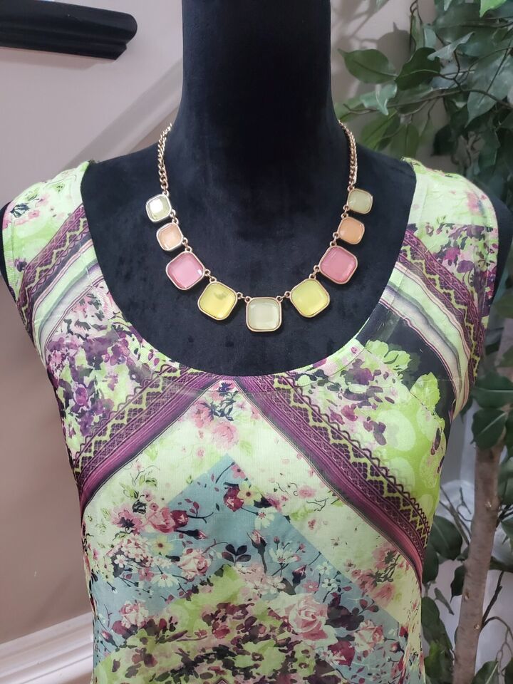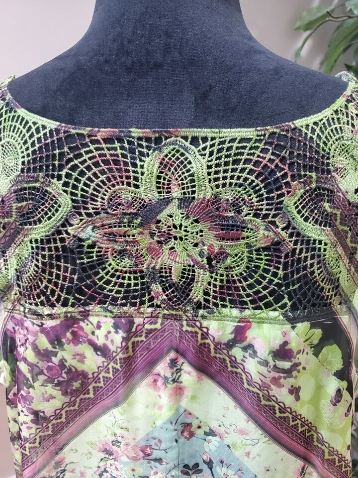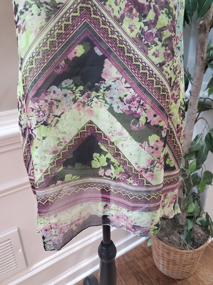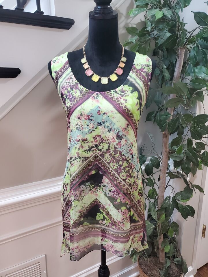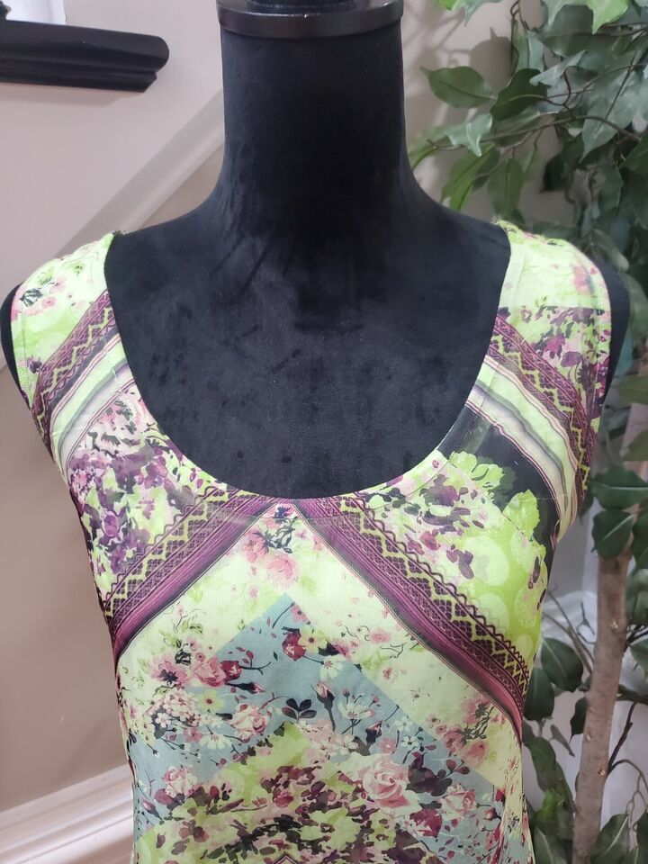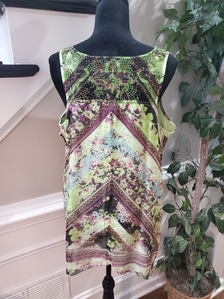 One World Womens Multicolor Floral Polyester Round Neck Sleeveless Top Blouse XL.