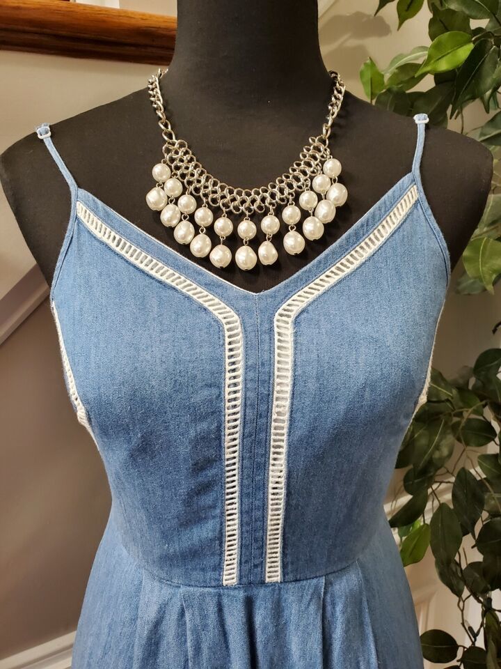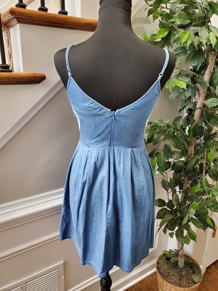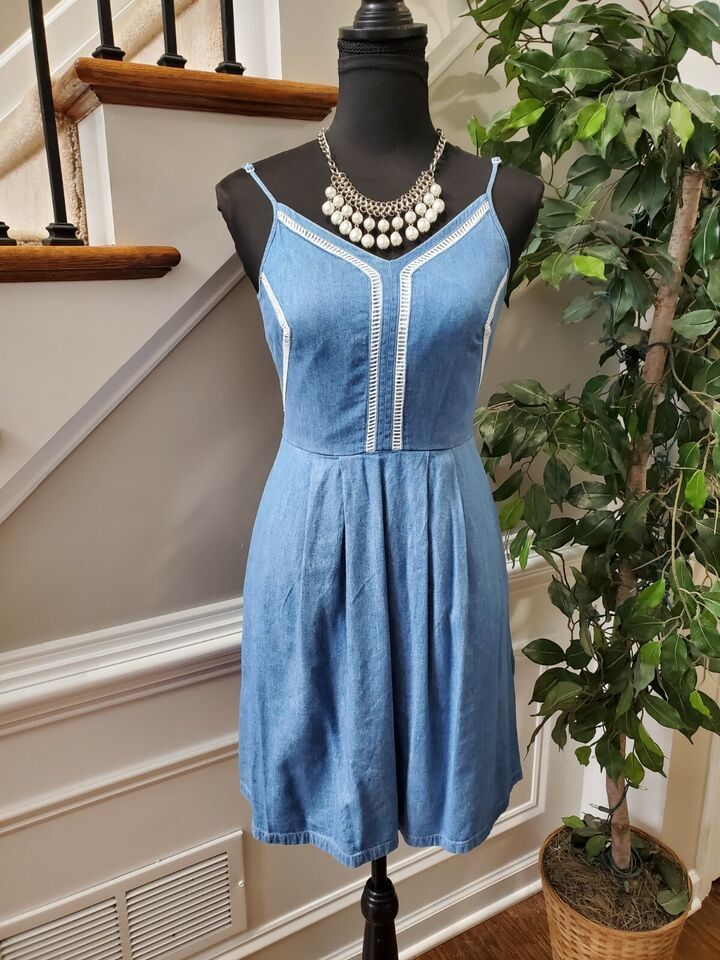 Maison Jules Juniors Blue Rayon Cotton V Neck Strappy Knee Length Dress Size XS