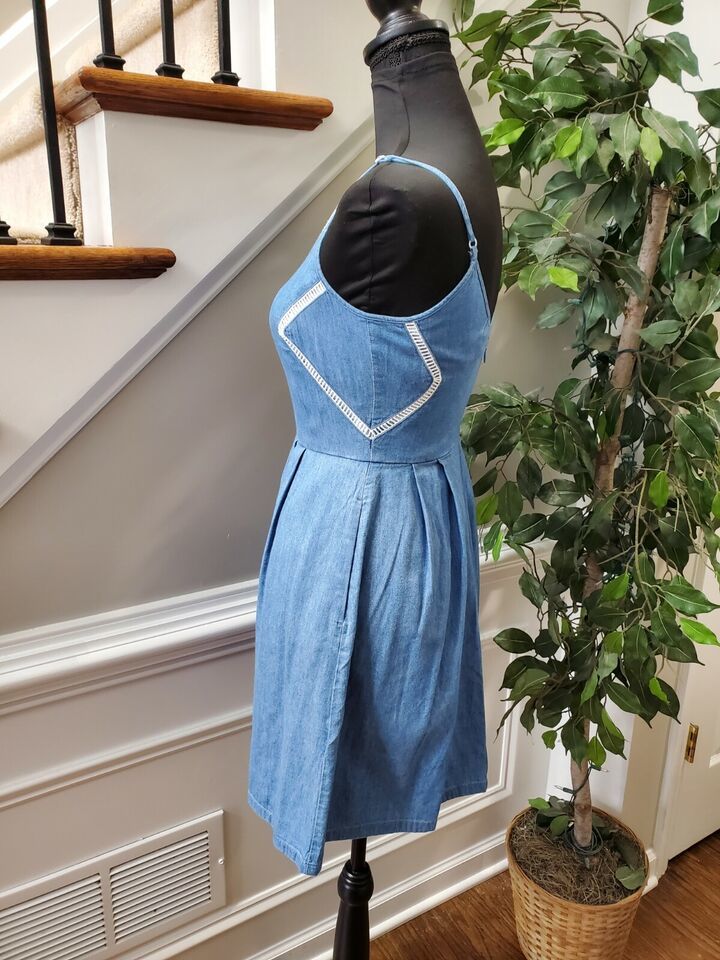 Mison Jules Women's Blue Rayon Cotton V Neck Strappy Knee Length Dress Size XS.