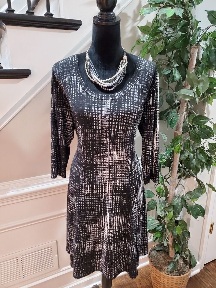 Karen Kane Women's Black Polyester Round Neck Long Sleeve Knee Length Dress 0X