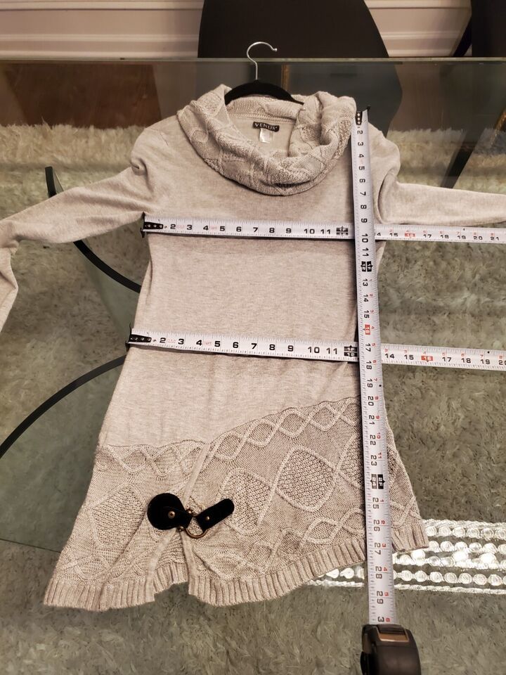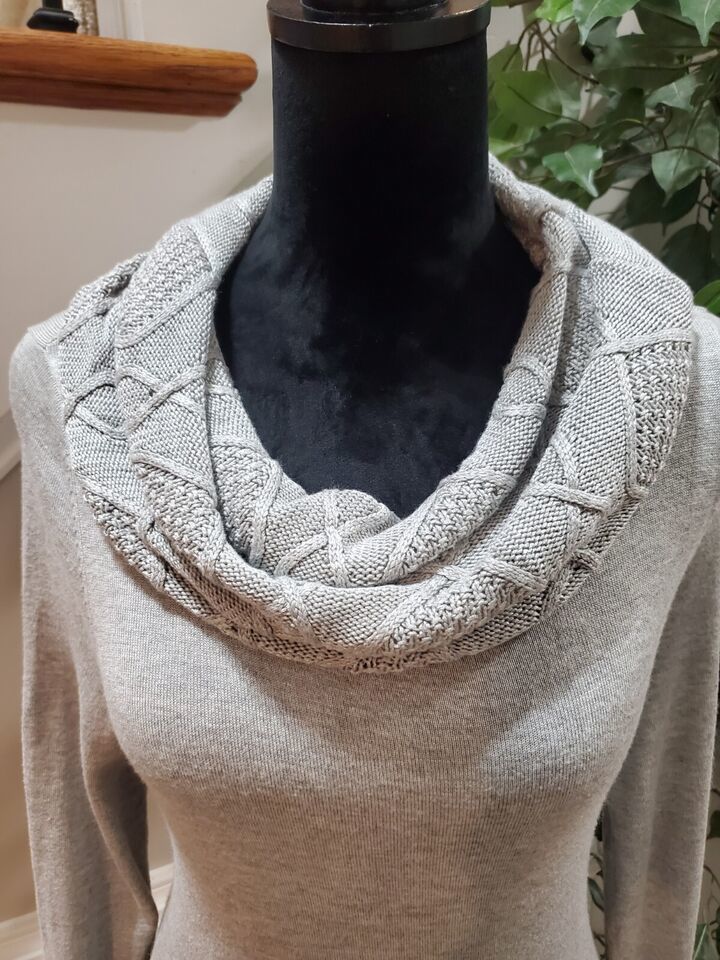 Venus Women's Gray Cowl Neck Long Raglan Sleeve Casual Knee Length Dress Small.