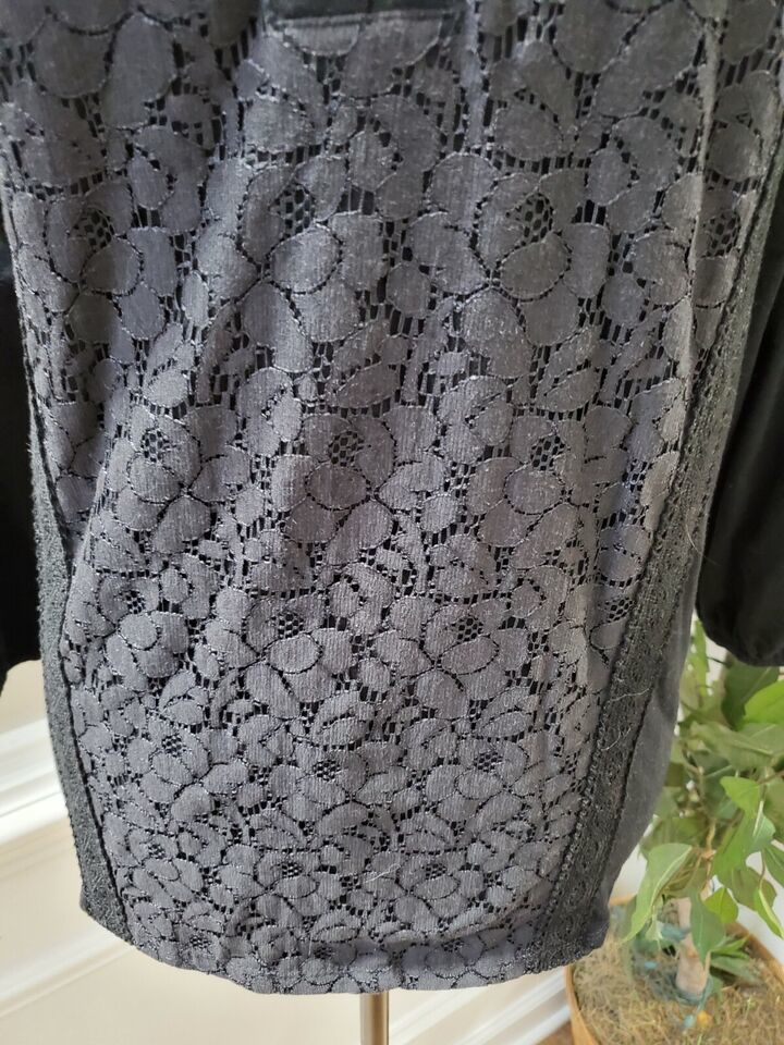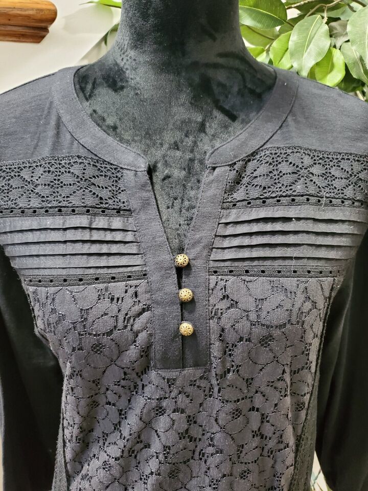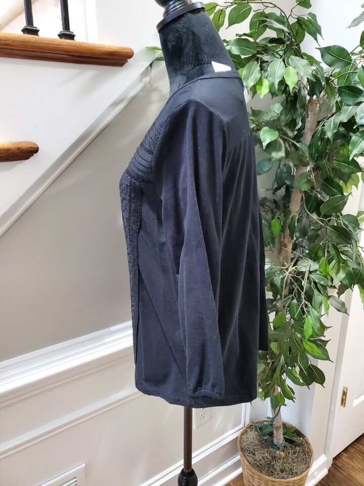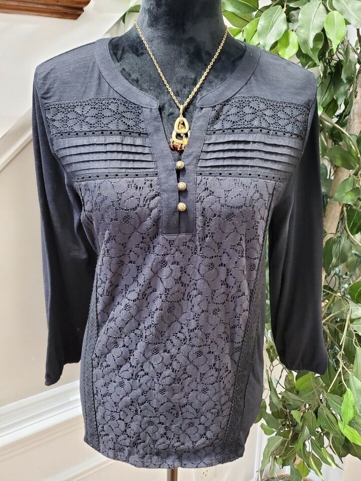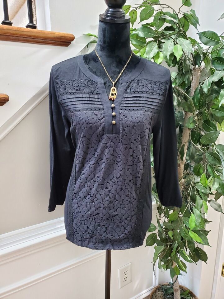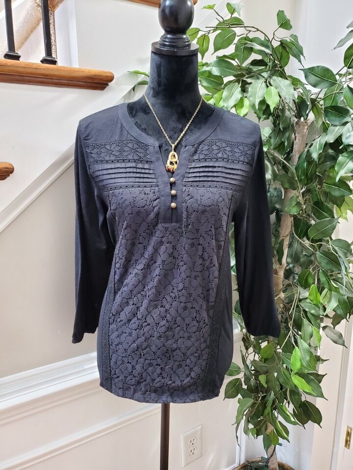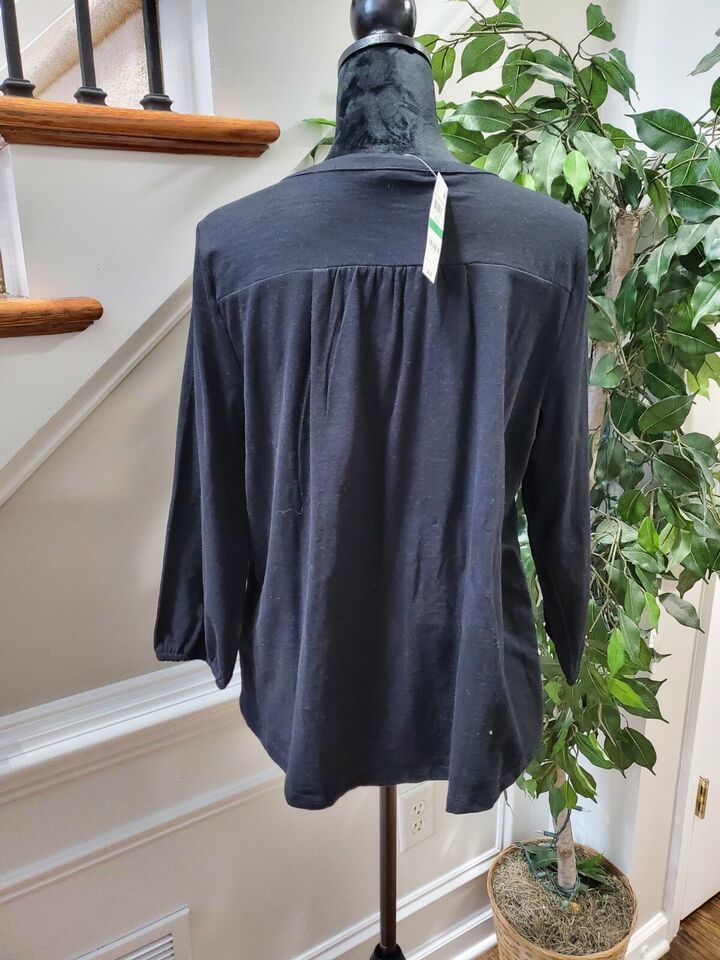 Style&Co. Womens Black Floral 100% Cotton Henley Neck Long Sleeve Blouse Size PL