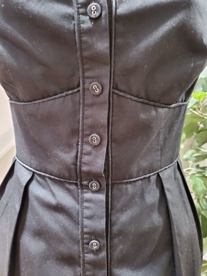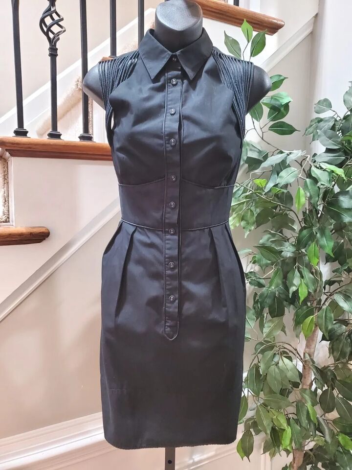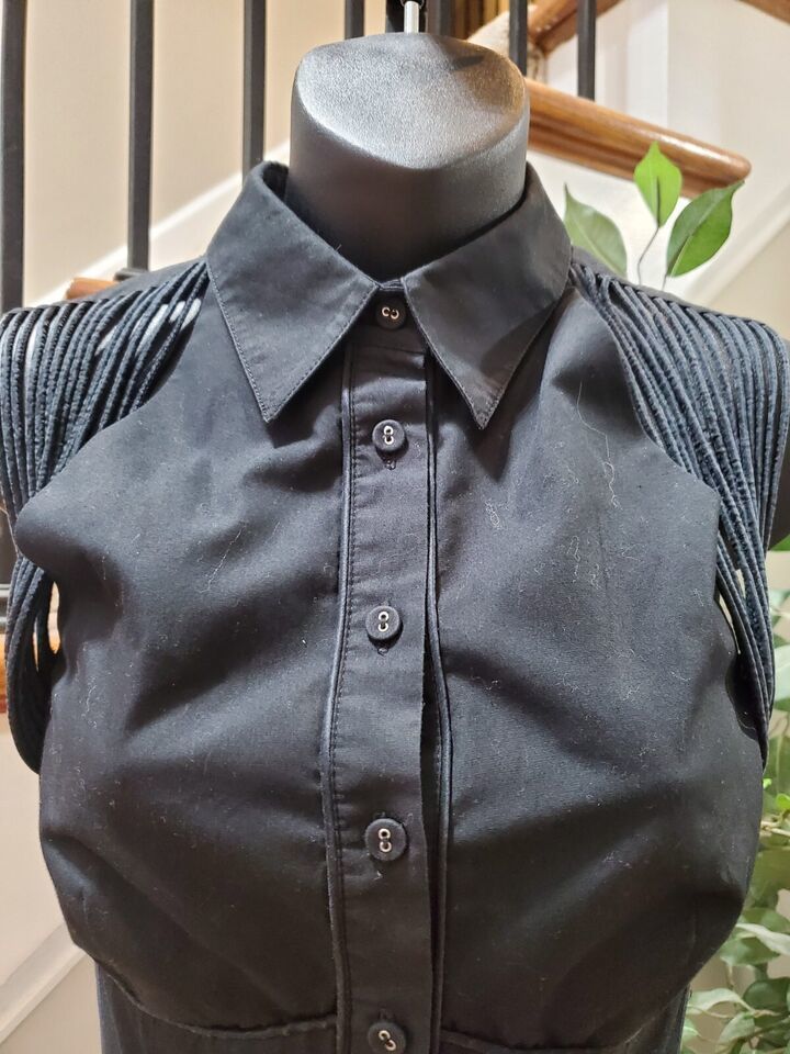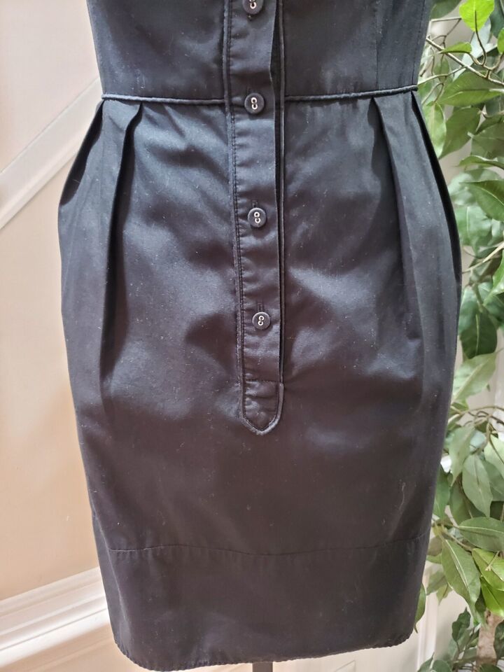 Nanette Lepore Women Black Solid Collared Sleeveless Casual Knee Length Dress 6.