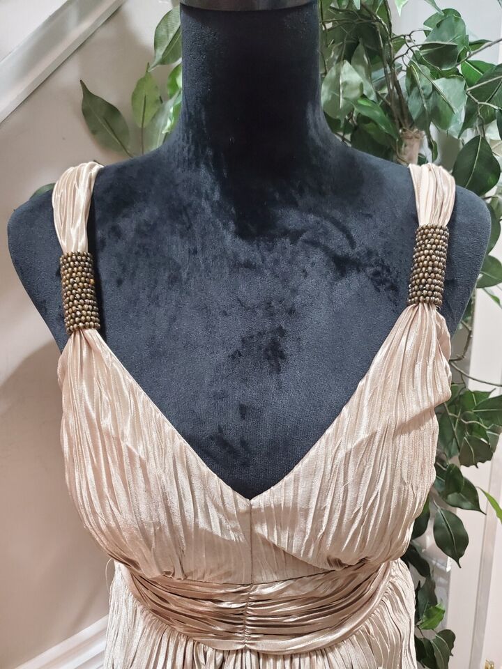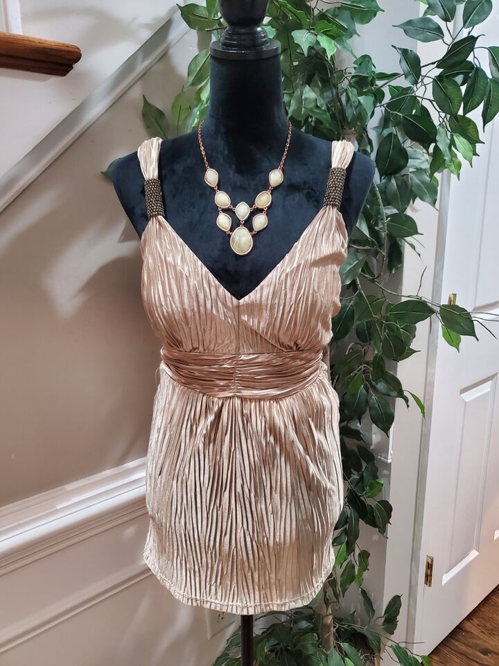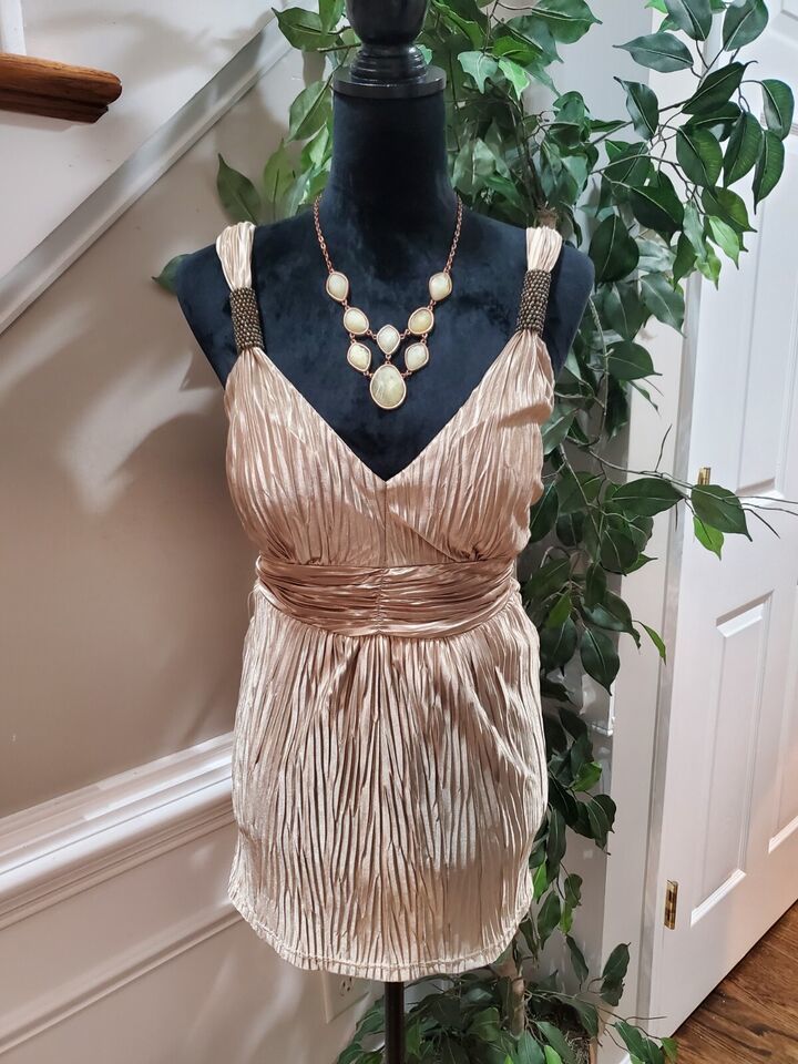 Le Chateau Women's Beige Polyester V-Neck Sleeveless Casual Top Blouse Size S/P