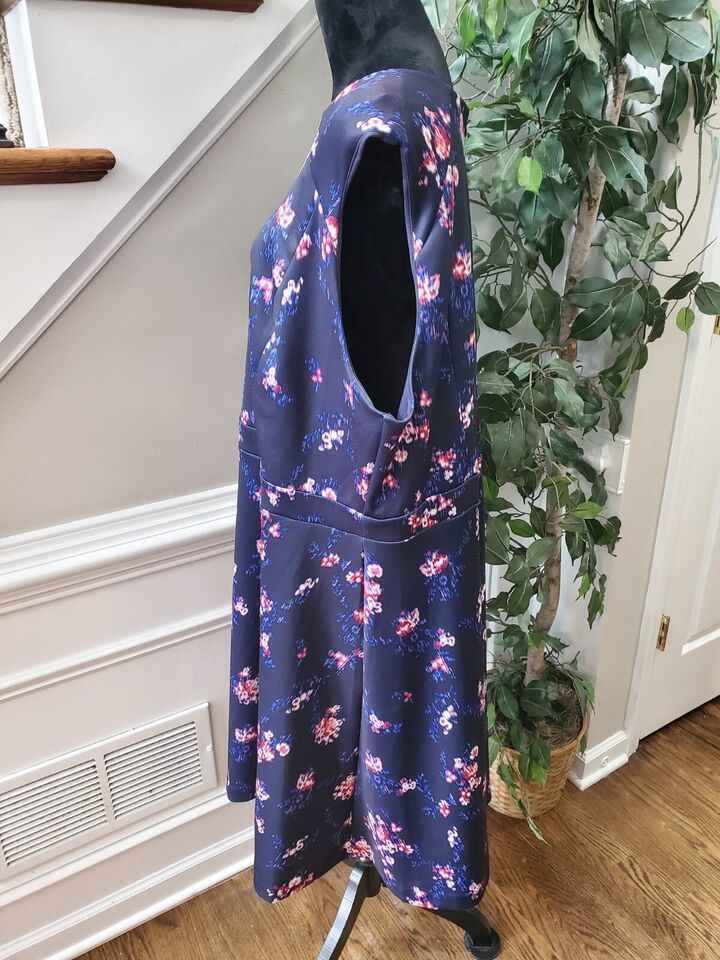 Roz Ali Women Blue Floral Polyester Round Neck Sleeveless Knee Length Dress 22.