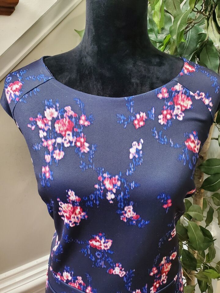 Roz & Ali Women Blue Floral Polyester Round Neck Sleeveless Knee Length Dress 22