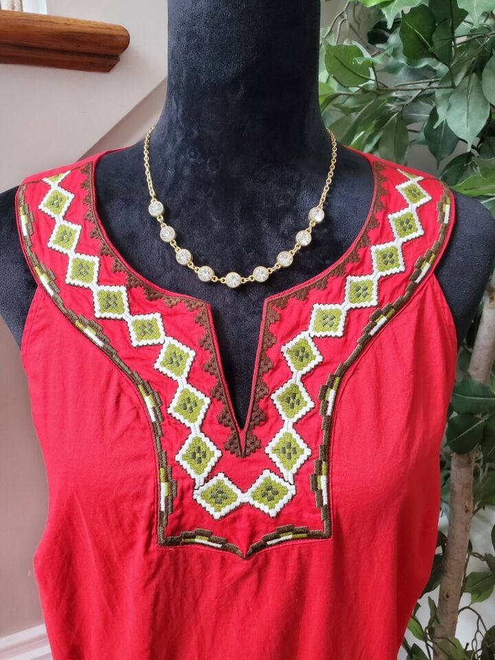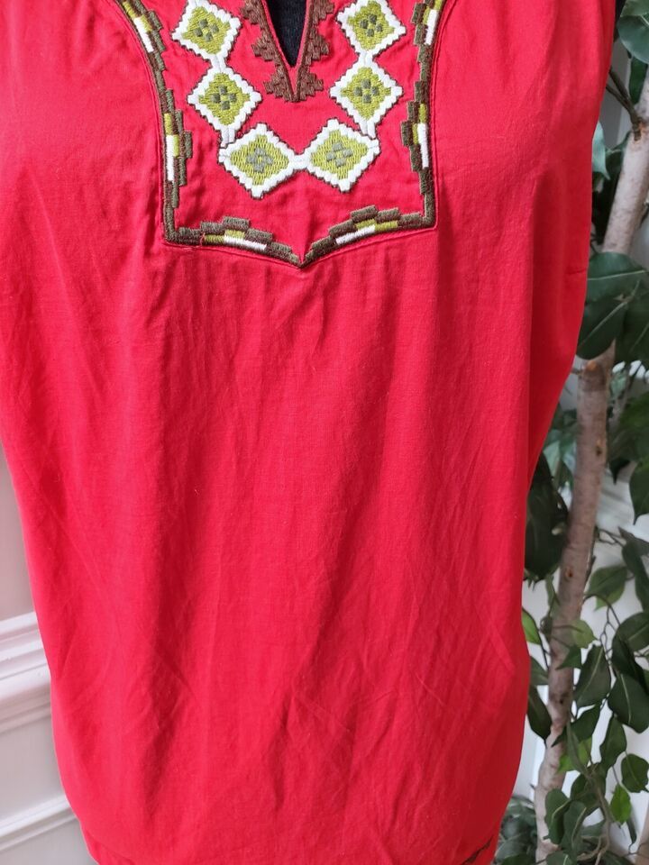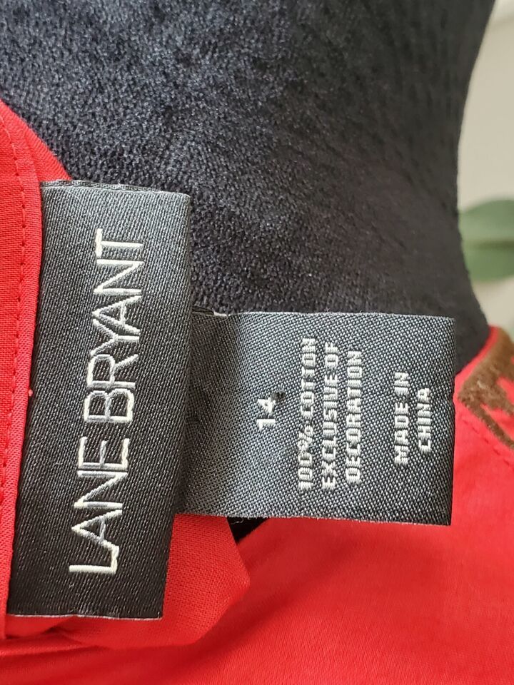 Lane Bryant Womens Red Sleeveless Round Neck Embroidered Blouse Top Size 14